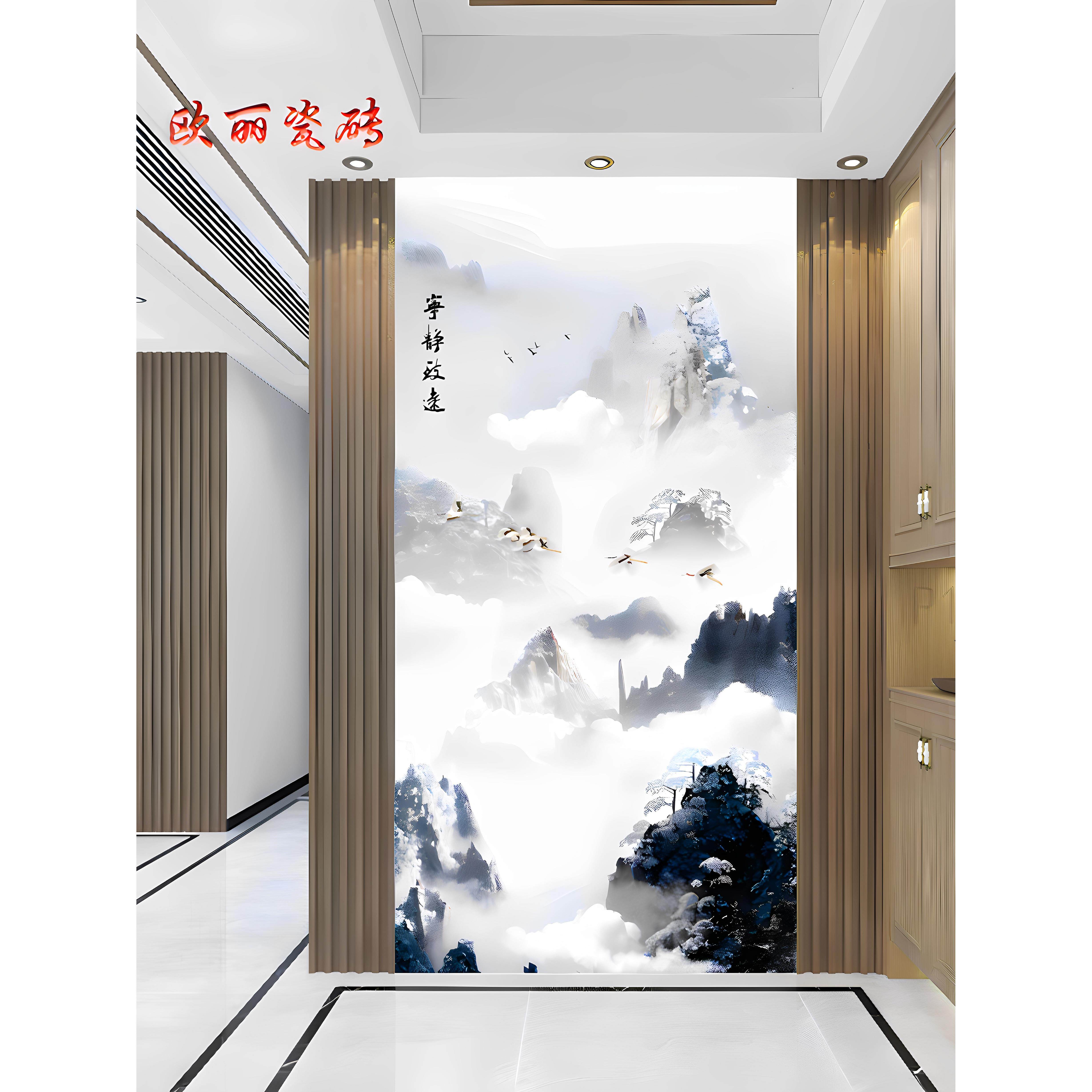 新款入户玄关壁画过道浴室客厅背景墙瓷砖岩板大理石微晶石山水画
