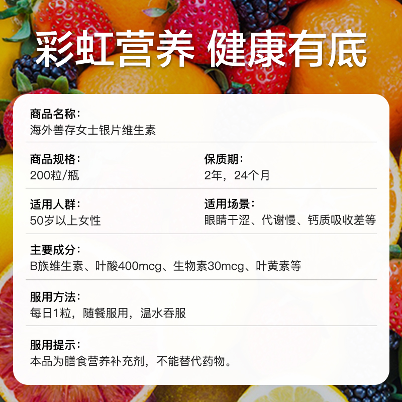 【自营】善存中老年银片叶黄素女士200粒*2瓶维生素D送爸妈五十