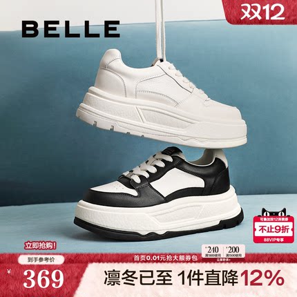 百丽厚底黑白熊猫板鞋子加绒运动休闲增高小白鞋面包鞋B2457AM5