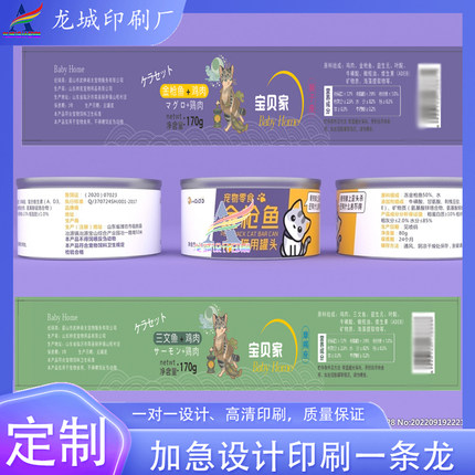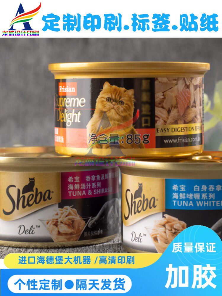 定制宠物零食罐头标签白色pvc不干胶三文鱼金枪鱼罐头商标贴纸