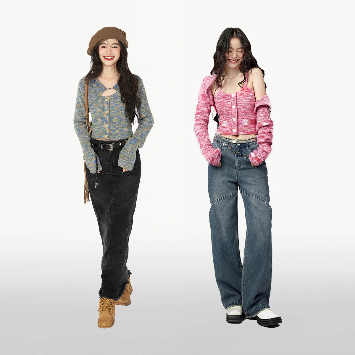 【69/件】EPTISON针织套装2025秋季新款复古披肩吊带辣妹两件套