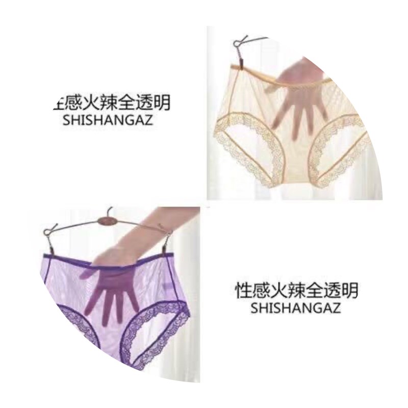 2条性感内裤女性感超薄全透明无裆中低腰网纱蕾丝大码胖mm三角裤