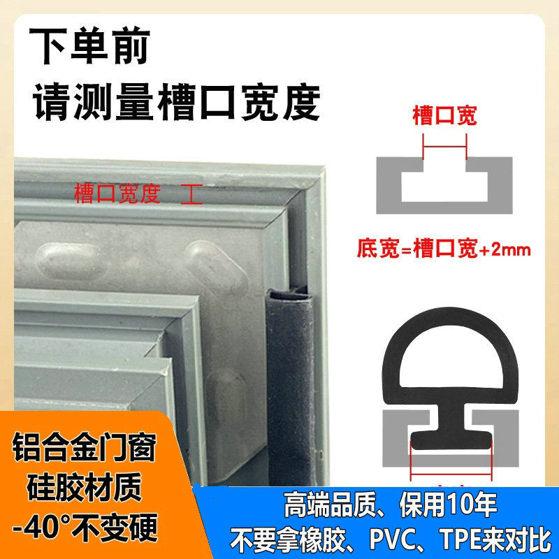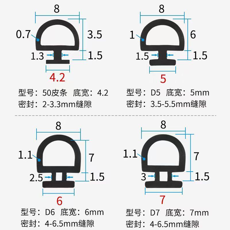 50平开窗皮条铝合金门窗漏风密封条隔音断桥窗户防风平底卡槽胶条