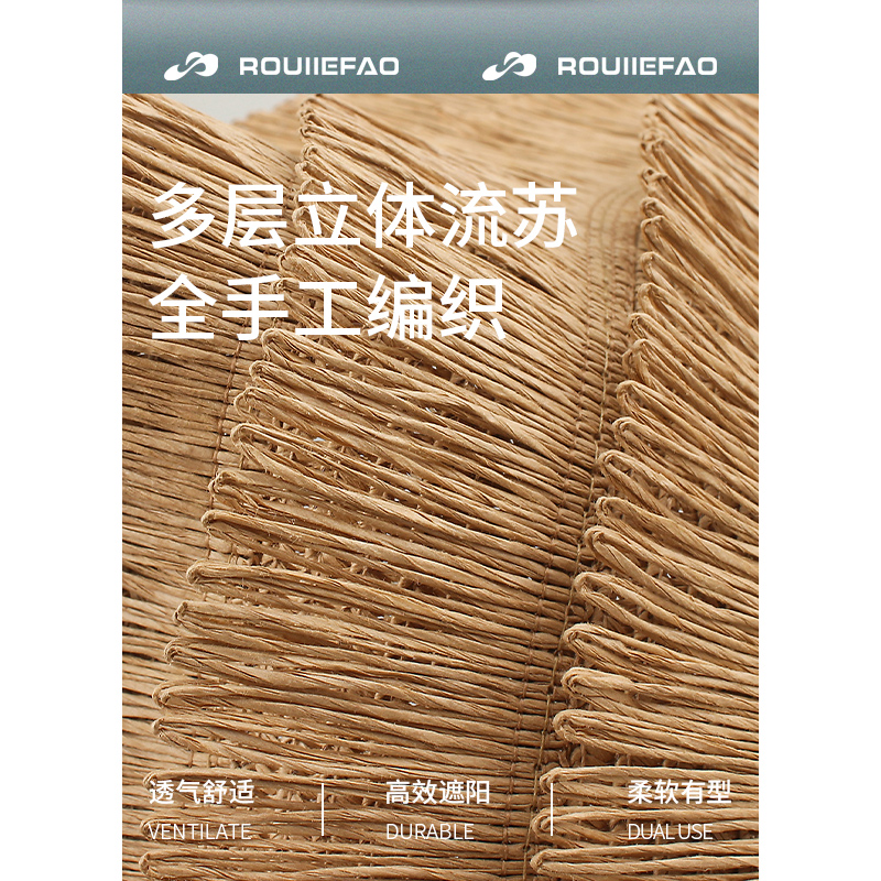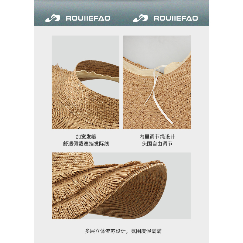 ROUIIEFAO草帽大帽檐流苏装饰