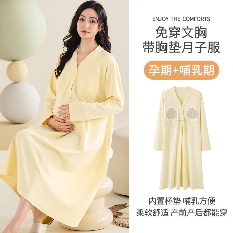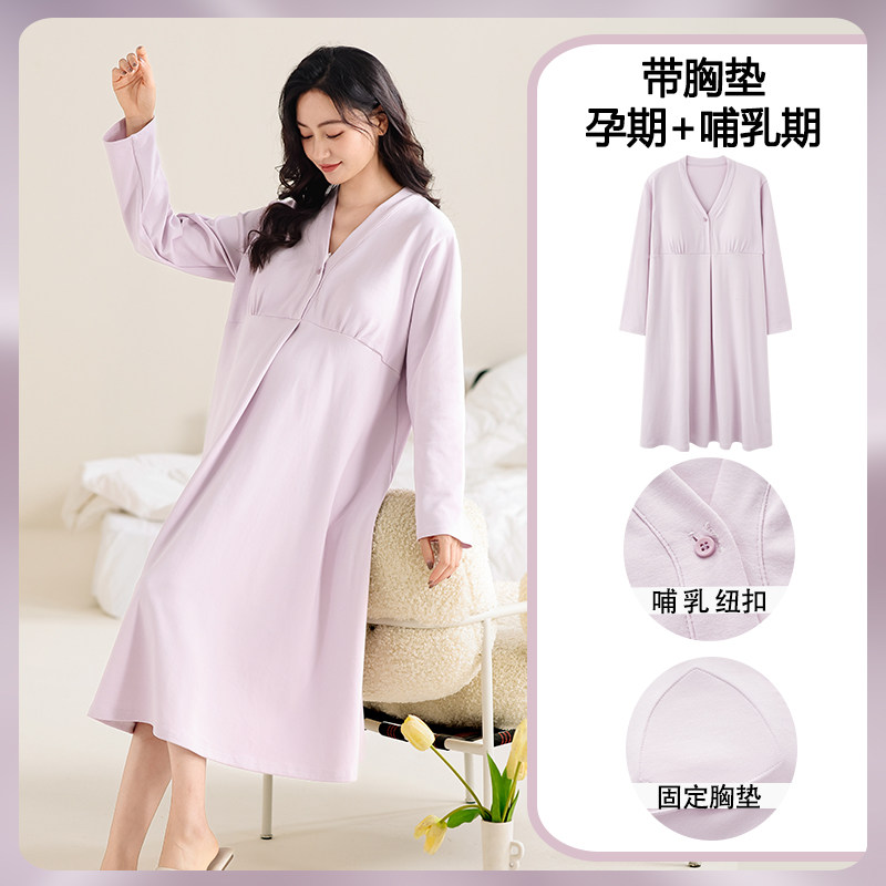 带胸垫孕妇睡裙纯棉春秋冬哺乳睡衣产后月子服产妇产房待产家居服