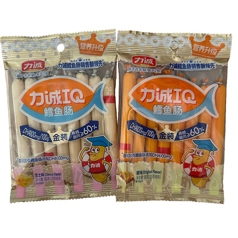 力诚IQ鳕鱼肠80g/包芝士味原味儿童宝宝休闲小零食品鱼肉火腿香肠