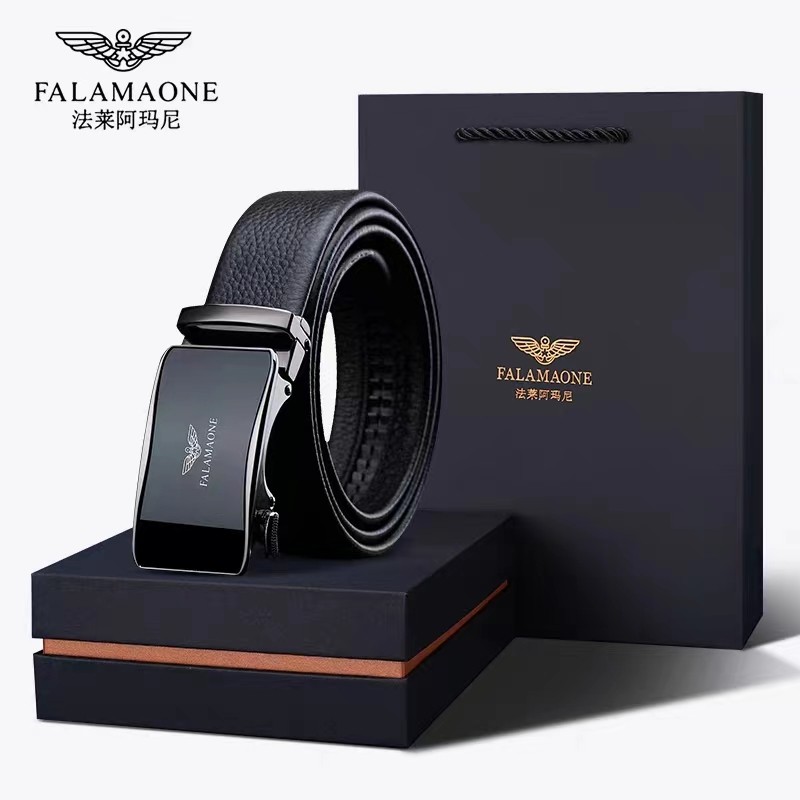 奢侈品牌法莱阿玛尼男士真皮自动扣皮带青年正品腰带高档牛皮裤带