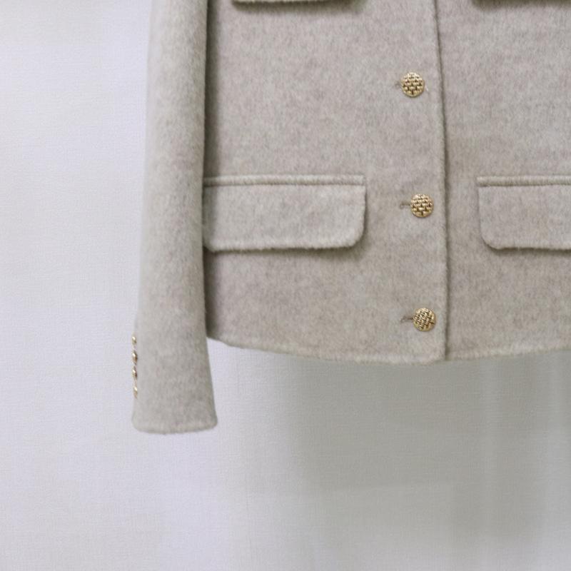 简风 小香风双面羊毛大衣日系女装短款高级感修身毛呢子圆领外套