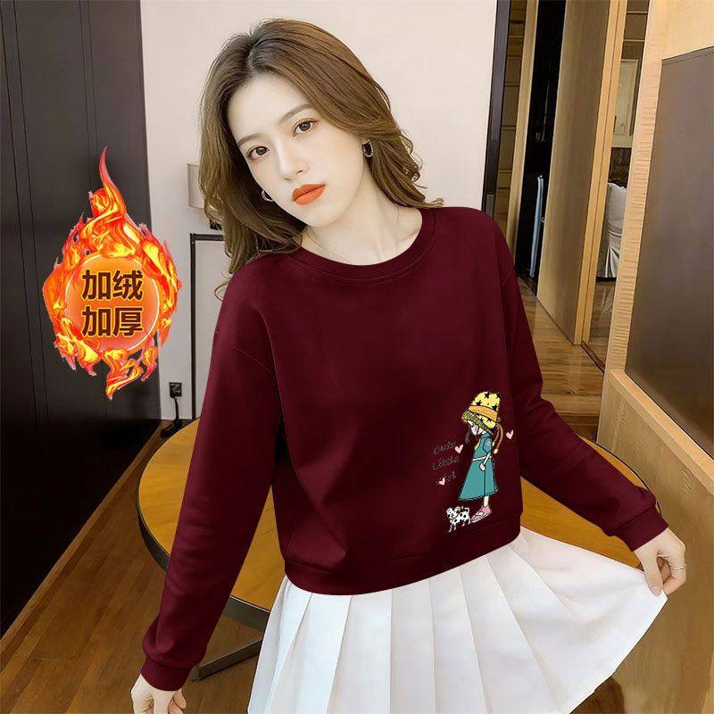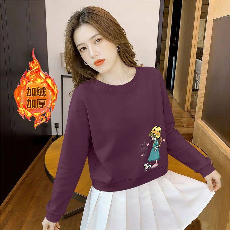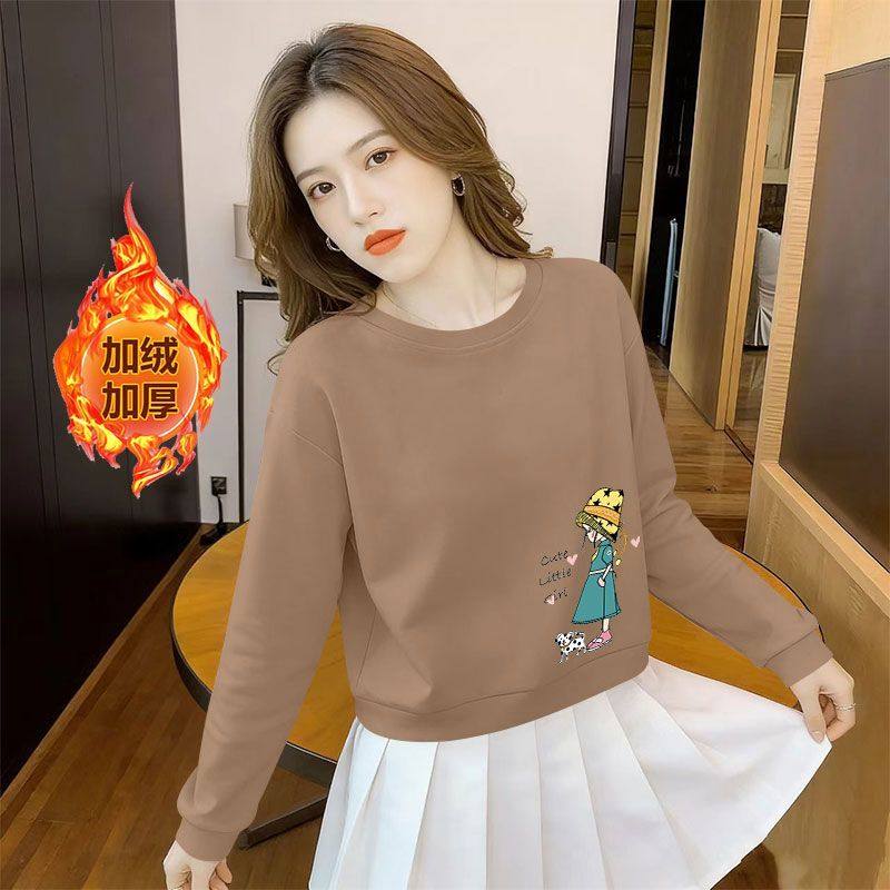 加绒加厚时尚卫衣女新款秋冬潮流洋气遮肉大码减龄休闲上衣女ins
