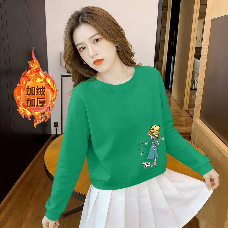 秋冬加绒加厚大码遮肉减龄女卫衣