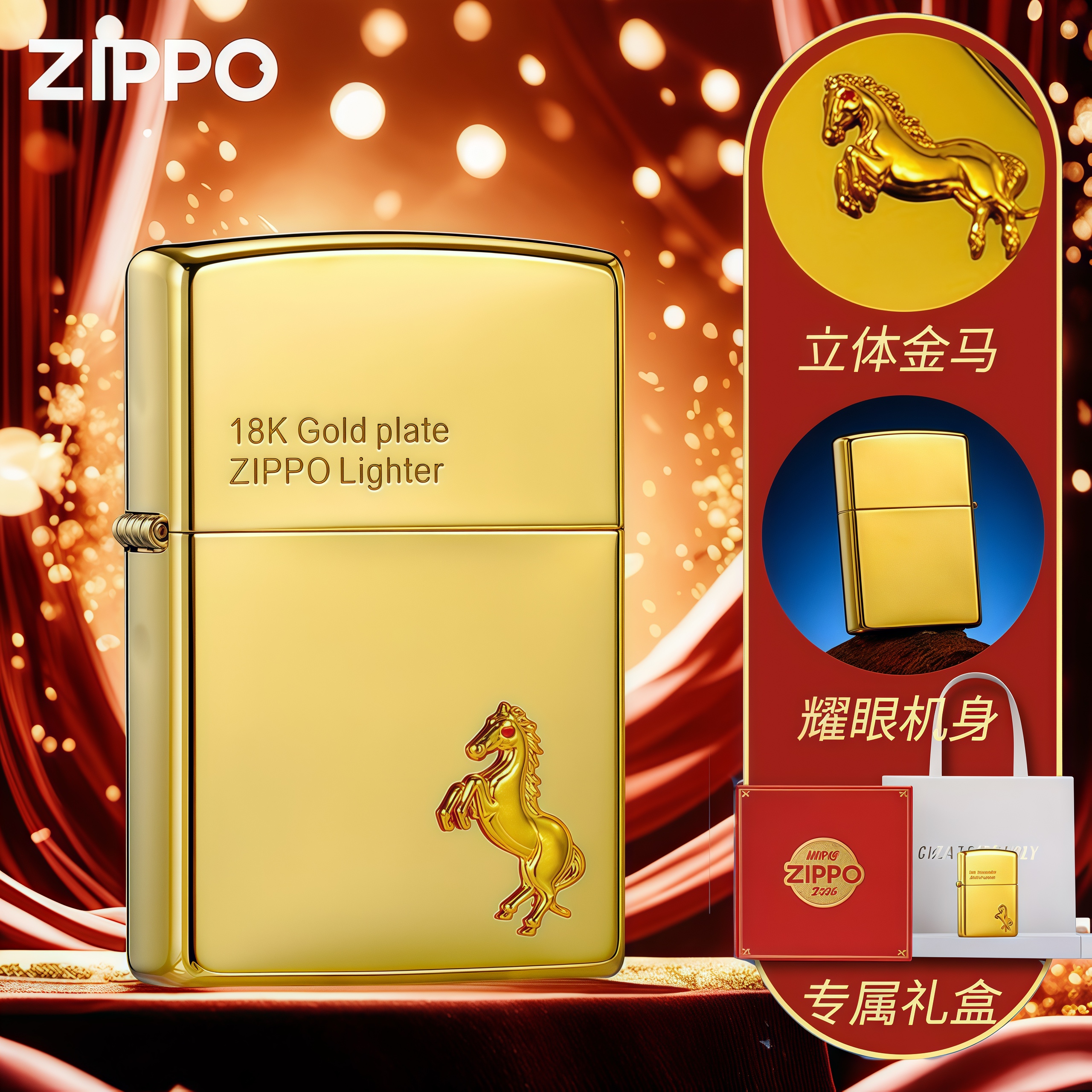 zippo打火机正品18k镀金2026年生肖马年限定版送男友新年礼物煤油