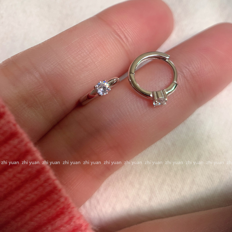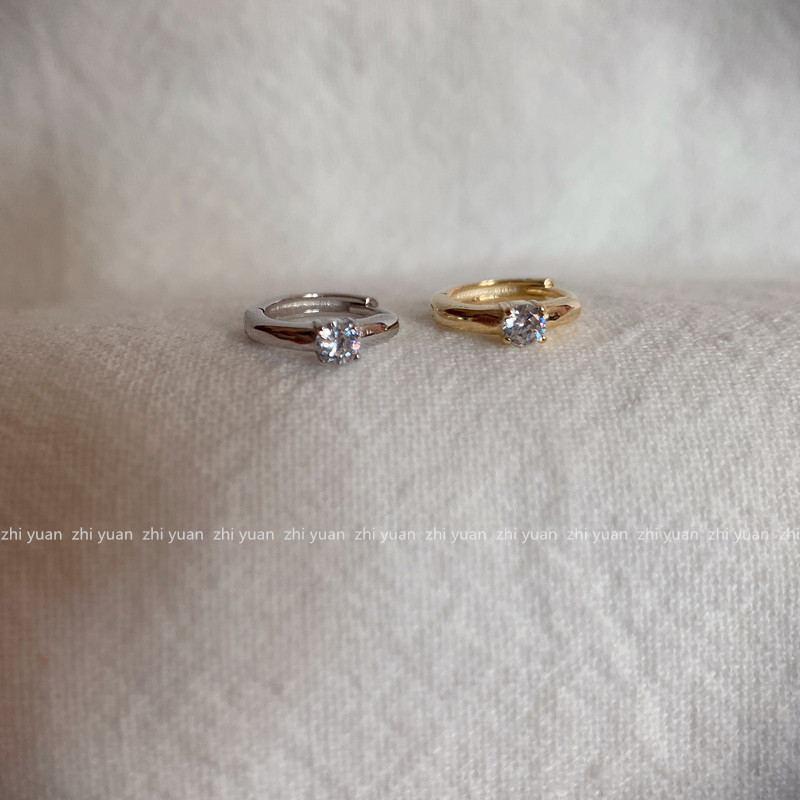 四爪锆石纯银镀14k金耳扣 日常小耳钉闪钻小巧冷淡风气质耳环日韩