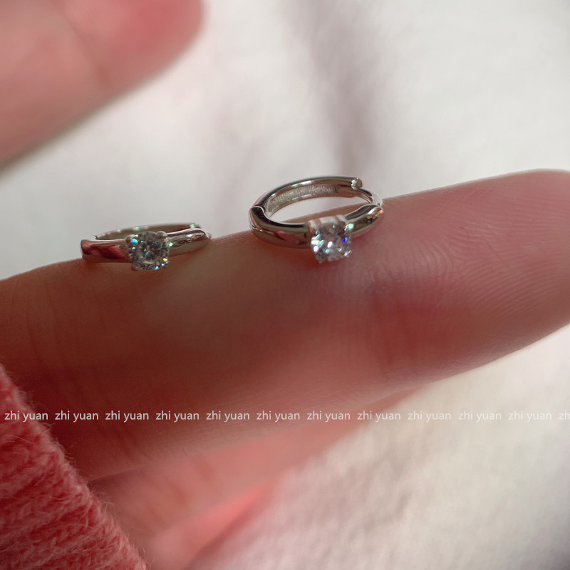 耳环四爪纯银镀14k日常闪钻小巧