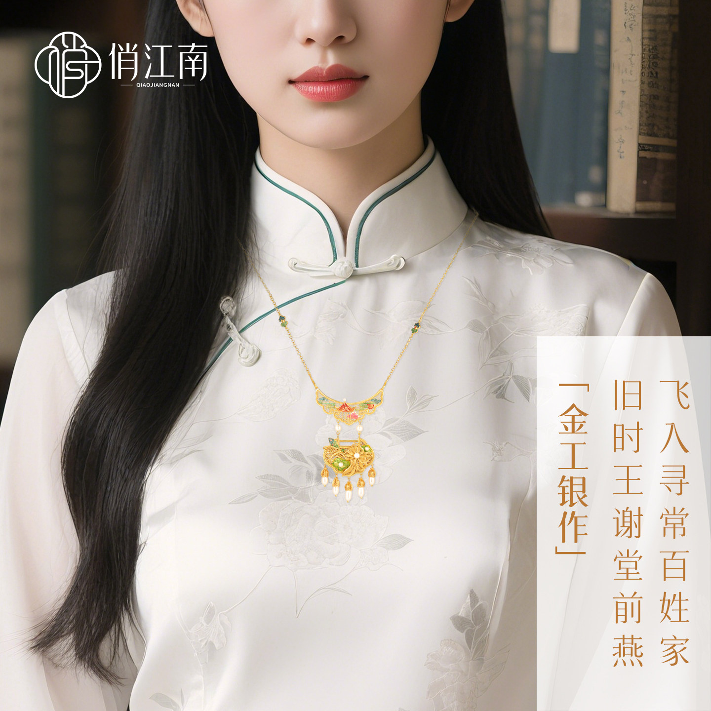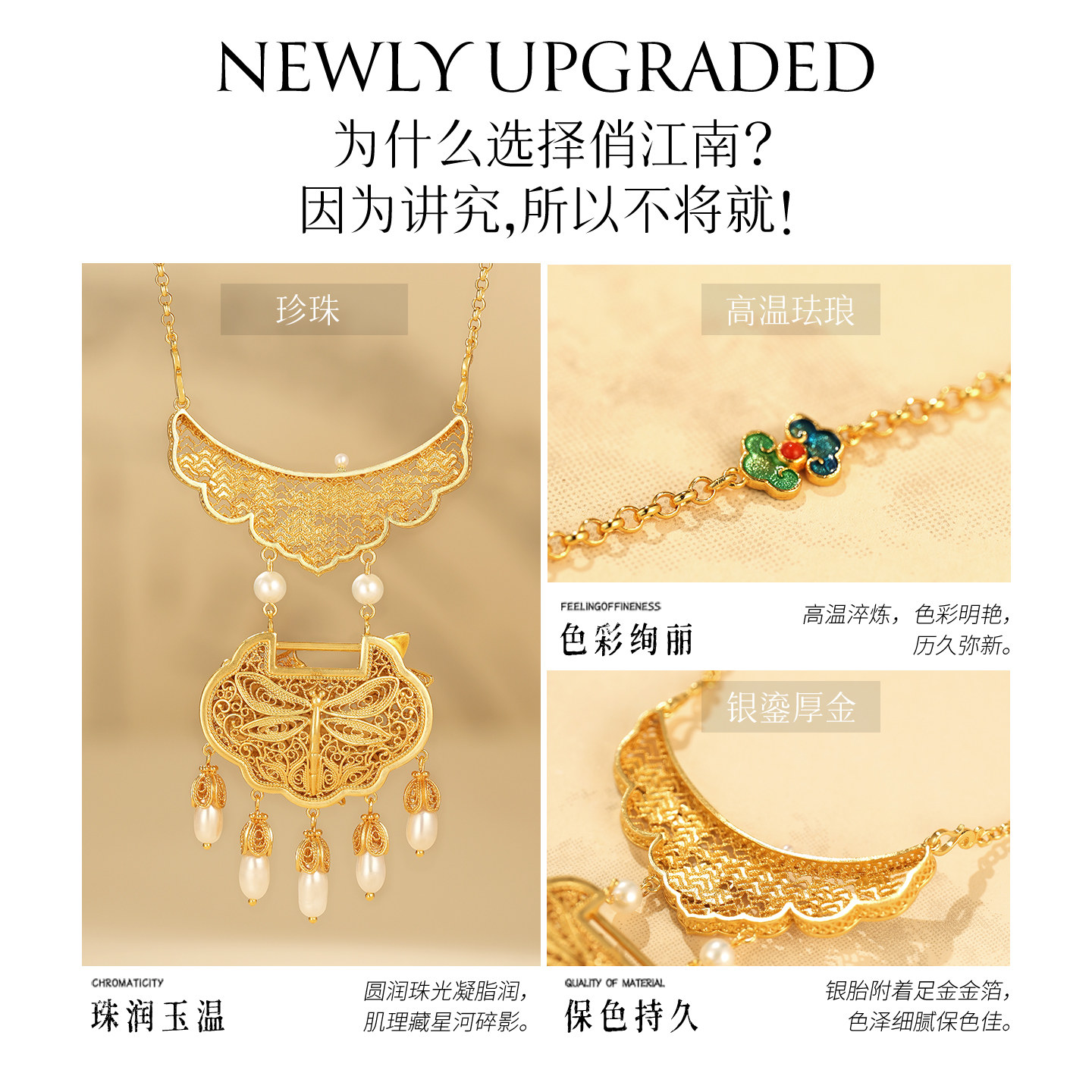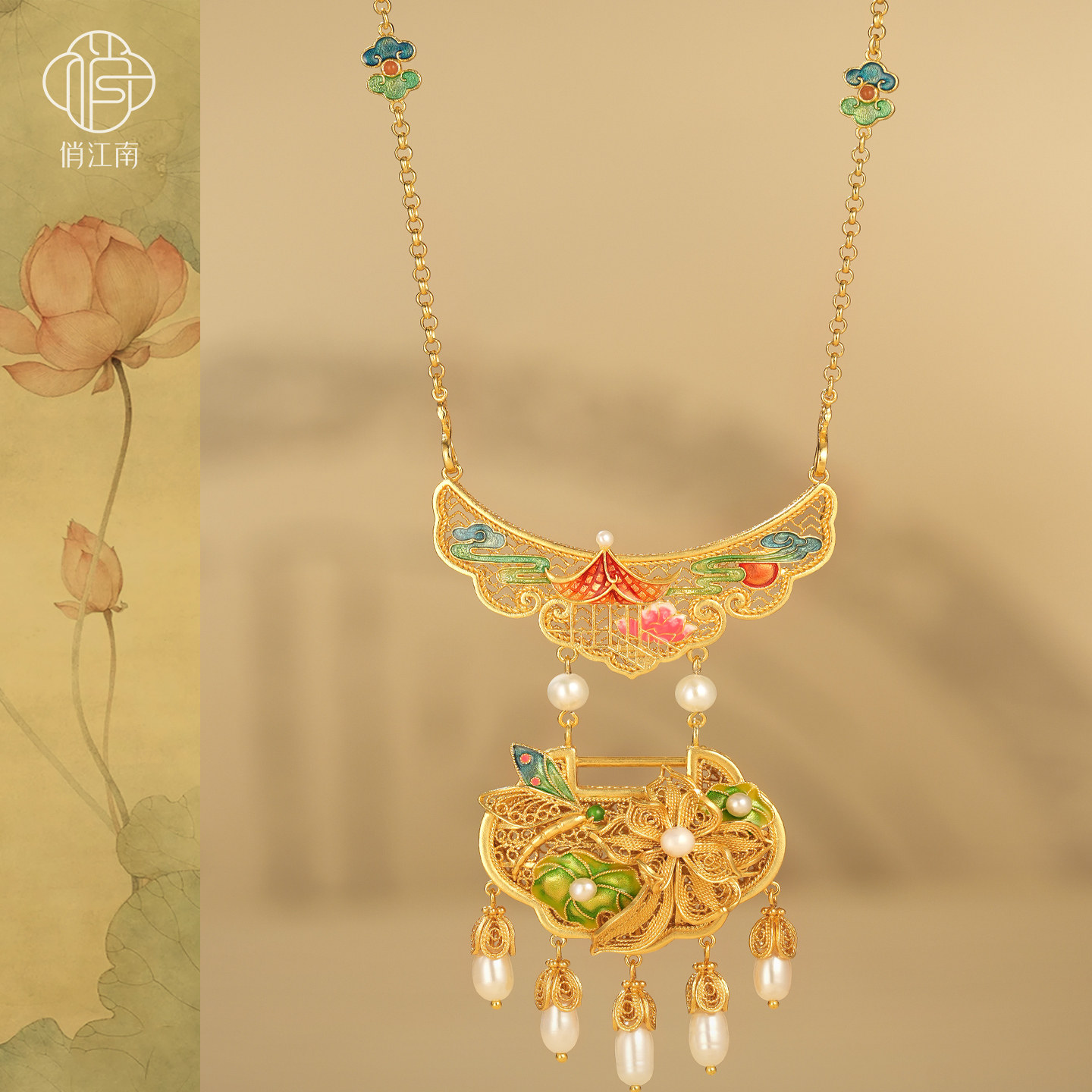 非遗花丝珐琅莲花珍珠银鎏金项链