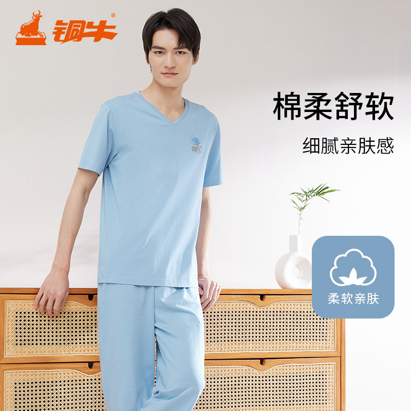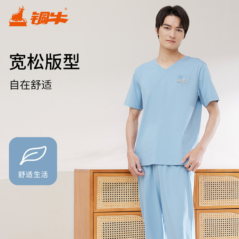 铜牛V领半袖家居服男士套装