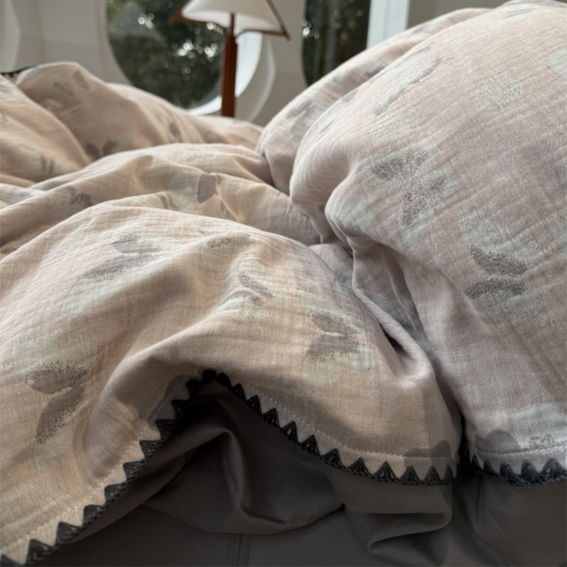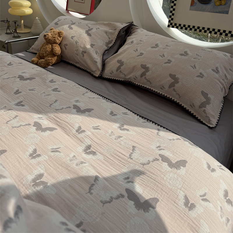 ins水洗棉提花庄园蝶舞床上四件套全纯棉1.5m1.8米公寓被套三件套