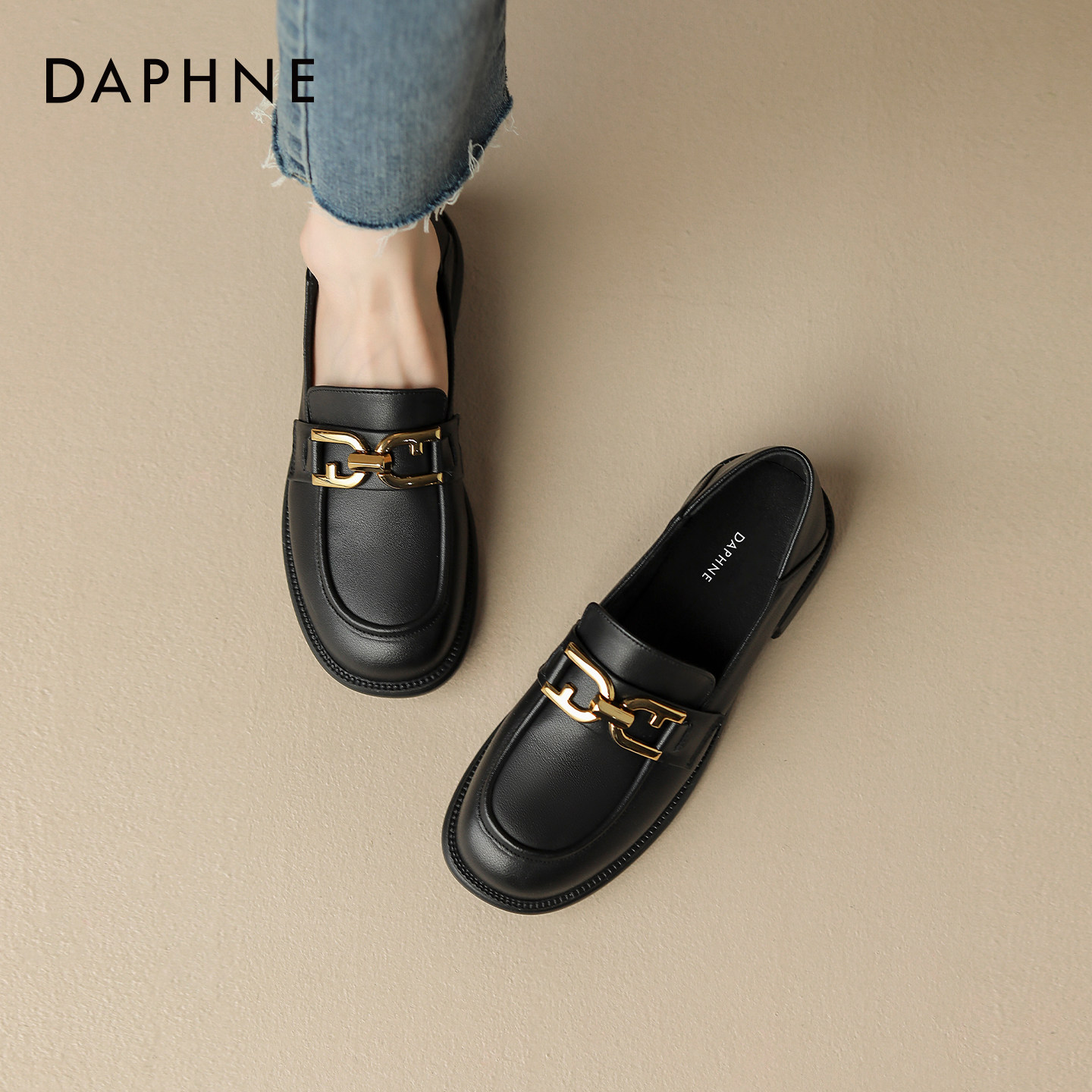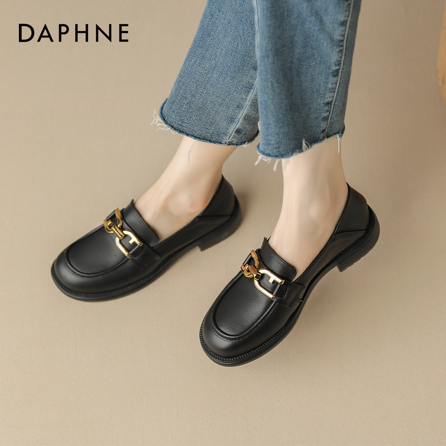 达芙妮乐福鞋女2026新款英伦风黑色小皮鞋女士通勤粗跟平底鞋单鞋