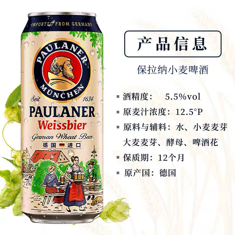 德国进口保拉纳/柏龙小麦啤酒500ml*6/12/24听精酿啤酒罐装白啤酒