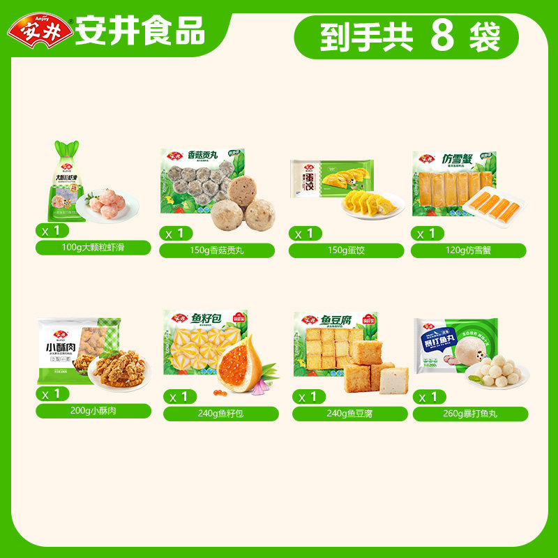 【8袋】安井火锅牛肉丸食材虾滑鱼籽包鱼豆腐鱼丸麻辣烫纯肉套餐