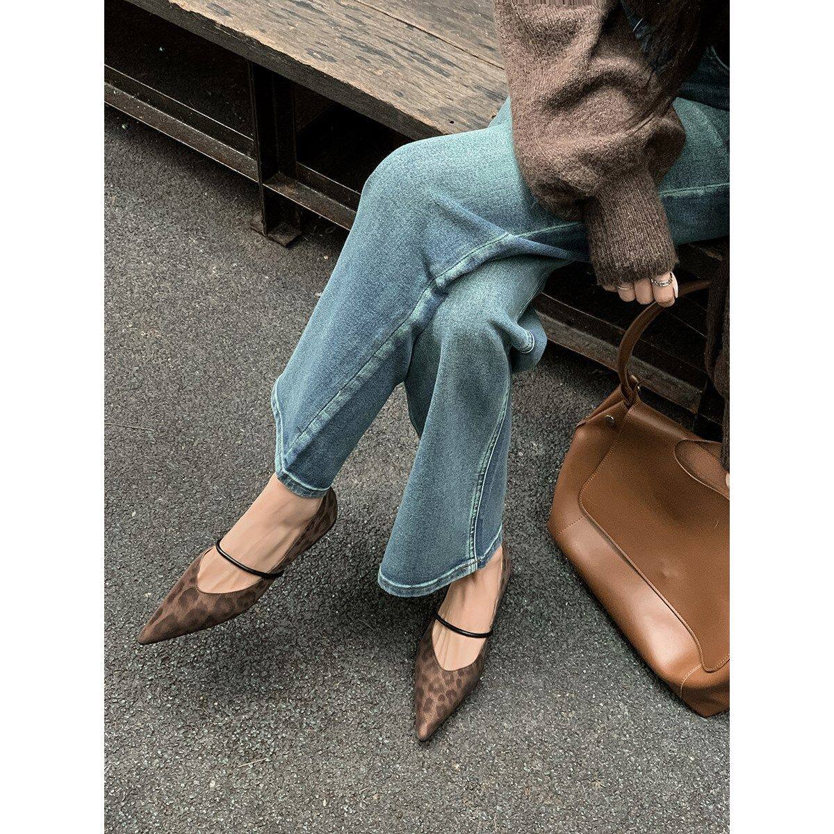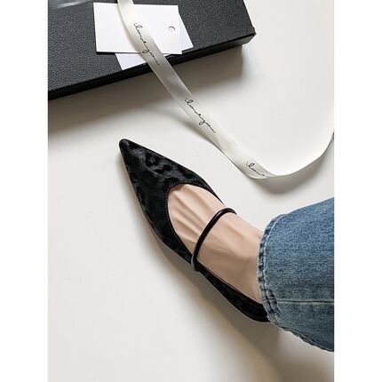 尖头单鞋女2026春季新款欧洲站仙女风简约气质复古浅口豹纹平底鞋