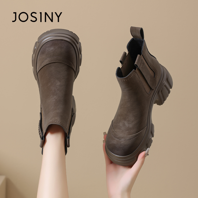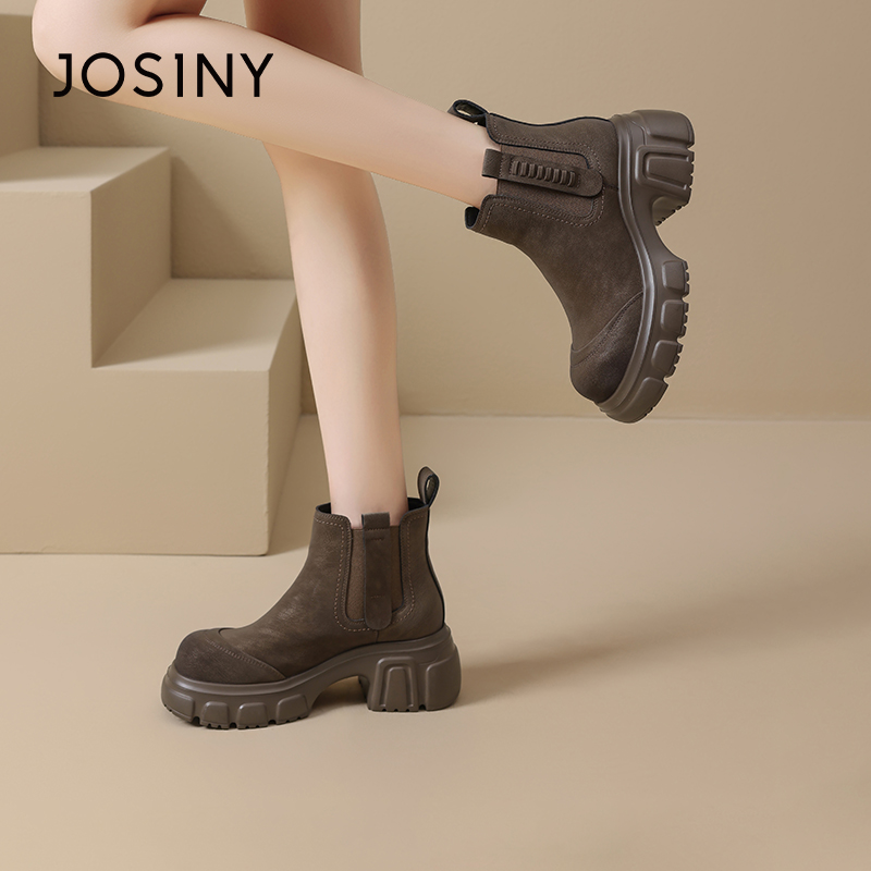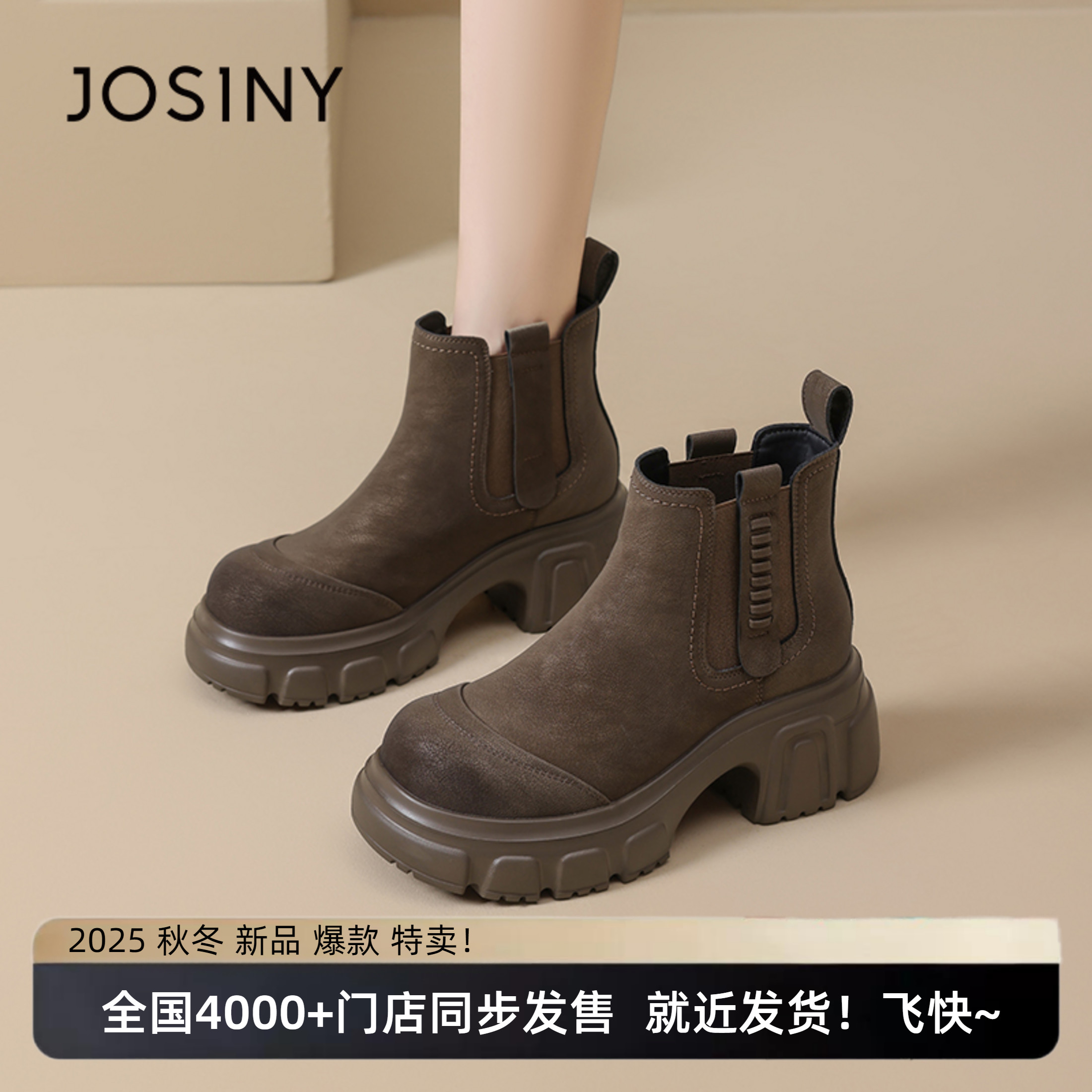 卓诗尼2025年冬季新款时尚百搭休闲女款厚底增高马丁靴女短靴