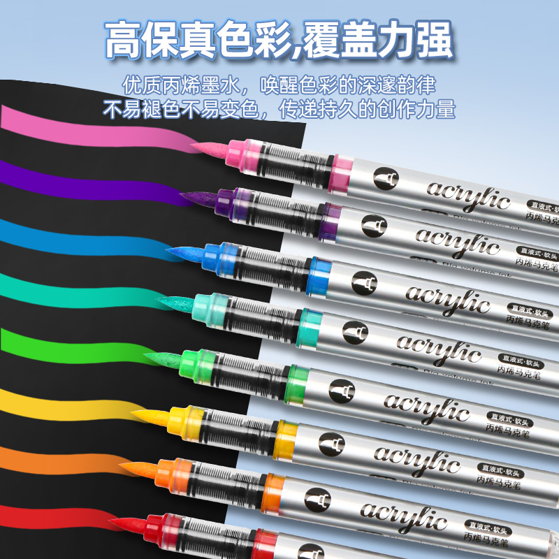 掌握直液式软头丙烯马克笔80色60色学生专用儿童小学生水彩笔24色36色48色不易透色可叠色颜料笔画笔套装