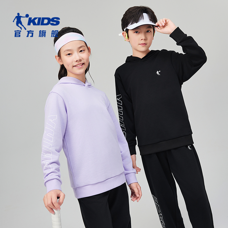 乔丹童装男童连帽卫衣运动秋冬装2025新款大童加绒上衣长袖帽衫女
