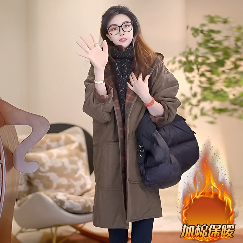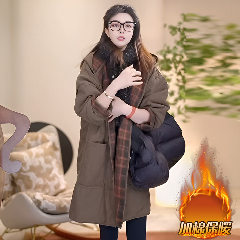 欧货宽松大口袋棉服女2025秋冬新款休闲中长款时尚保暖棉衣外套女
