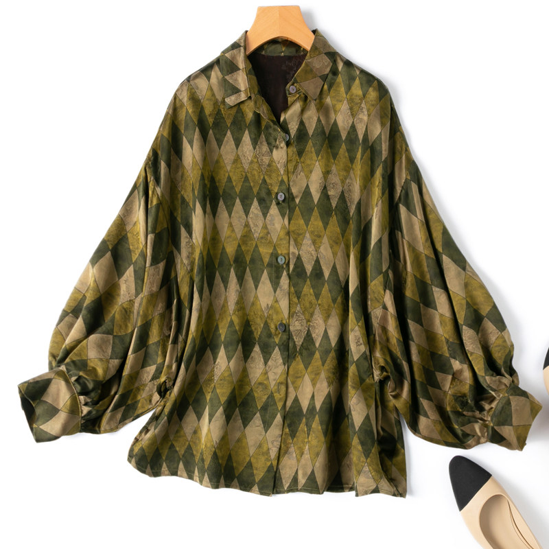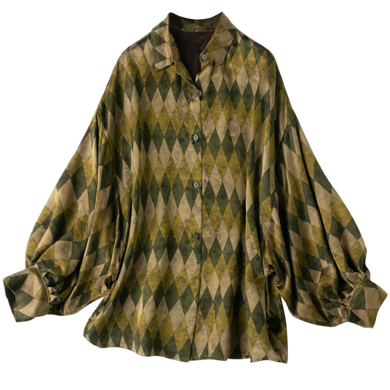 高阶!花罗香云纱宽松灯笼袖衬衫