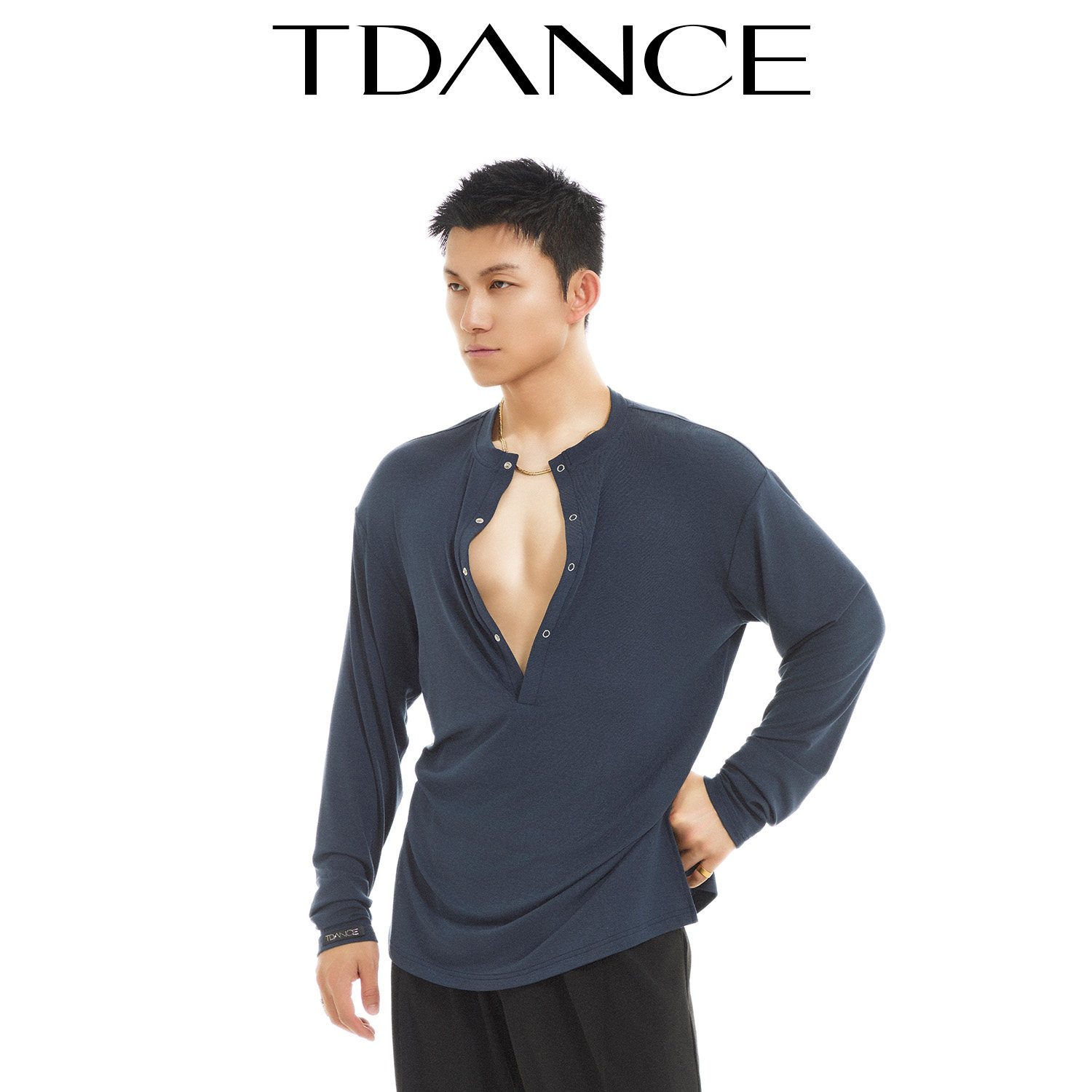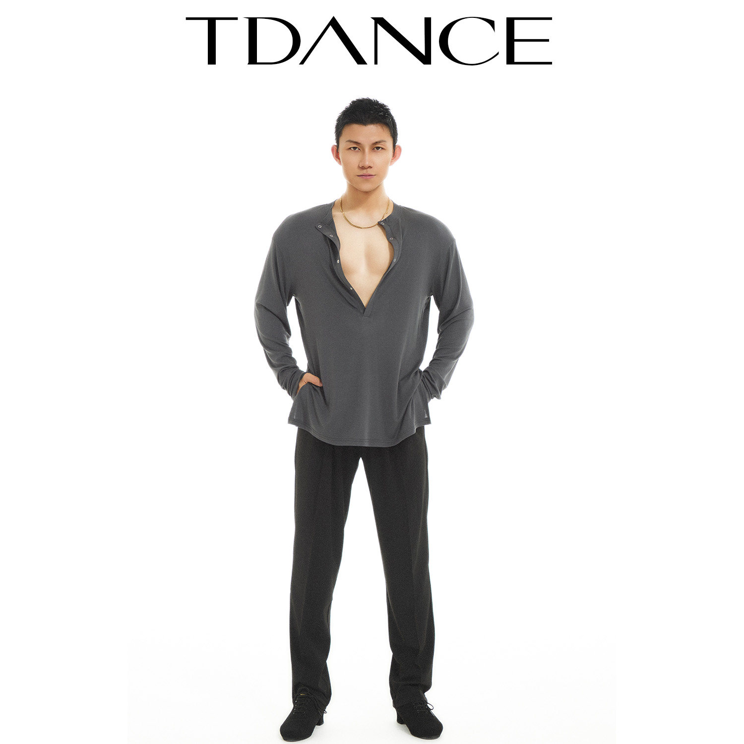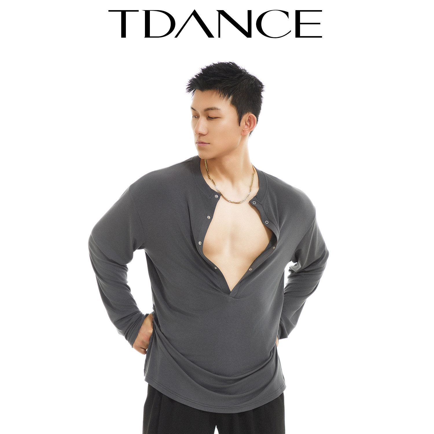 TDANCE男拉丁练习【半门襟按扣长袖上衣】班服表演百搭日常BS-45