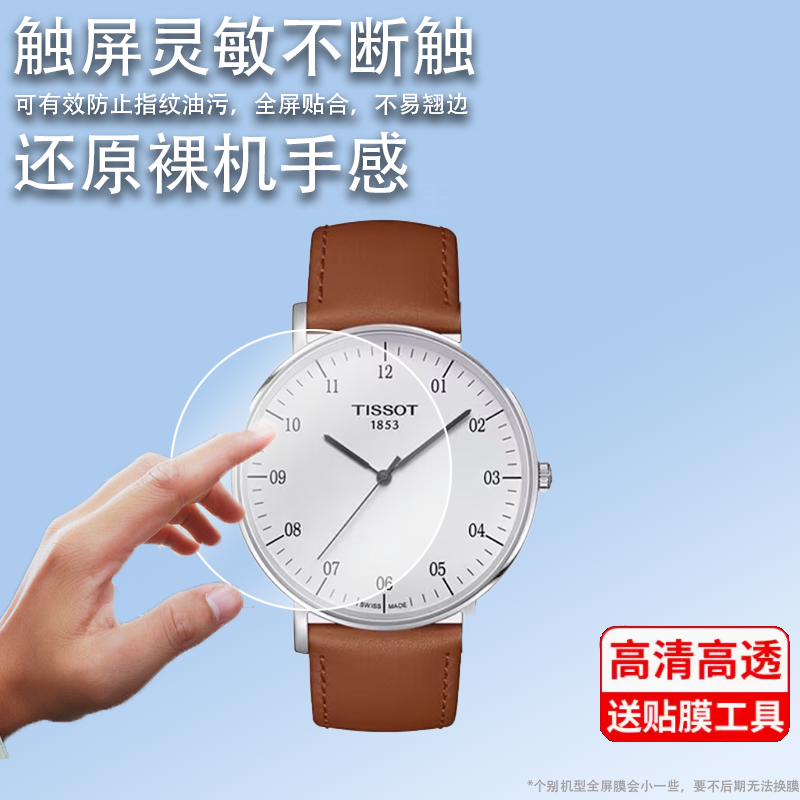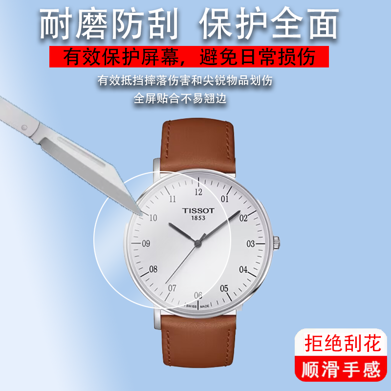 适用于TISSOT天梭瑞士手表魅时系列贴膜俊雅卡森PR100卡森臻我杜鲁尔唯思达速驰屏幕保护膜T109男表非钢化膜