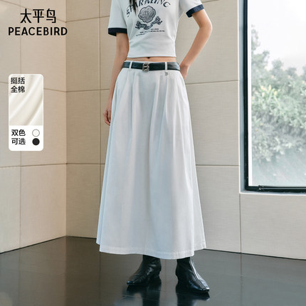 太平鸟百褶长款半身裙女2025春季款高腰伞裙显瘦A字休闲设计感