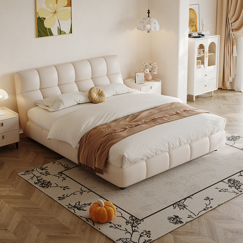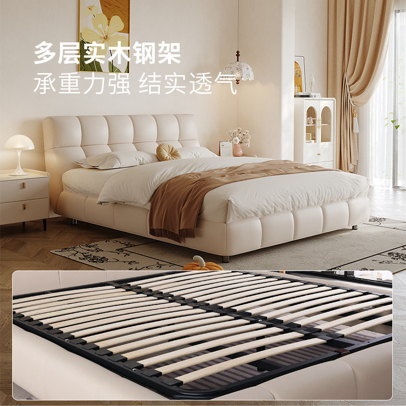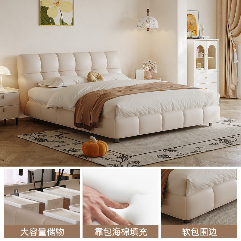 慕思旗舰店真皮床卧室大床储物床高箱床现代简约奶油风床双人床