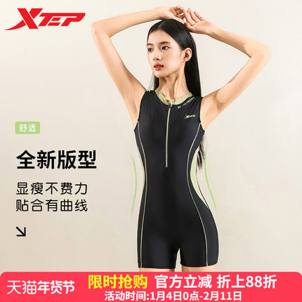 特步女士连体游泳衣2025新款游泳馆专用竞速运动训练保守平角泳装