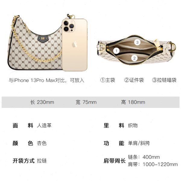 高档半月包轻奢女包链条2024时尚新款小包小众包包腋下hr赫莲娜单