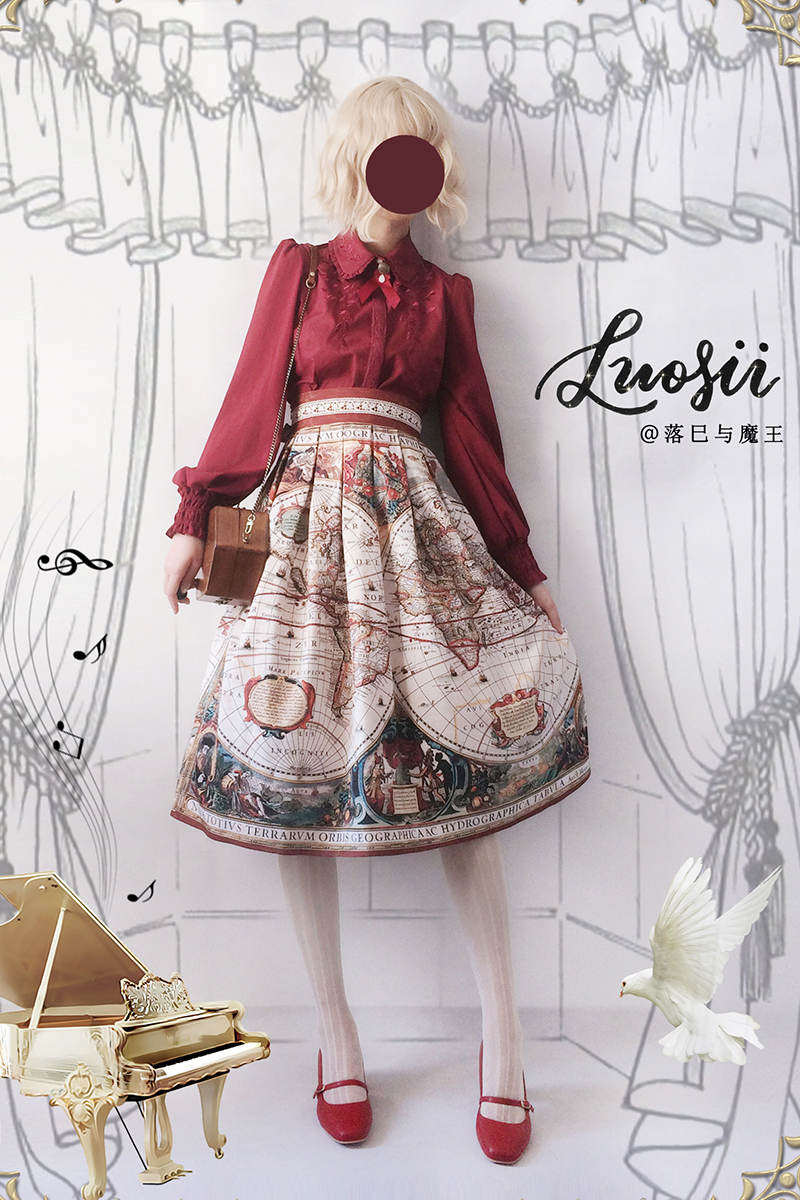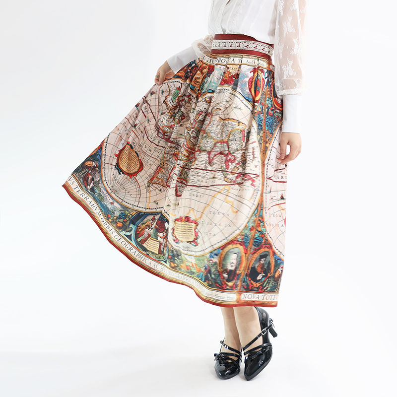 【地图SK】地图系列半身裙链接-青Lo原创国牌Lolita复古印花