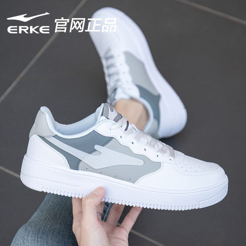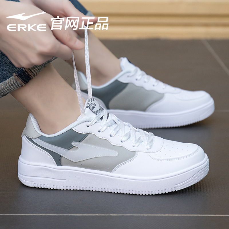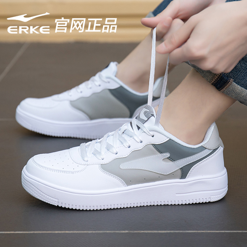 鸿星尔克男鞋板鞋四季款皮面休闲鞋新款红星软底运动鞋防水小白鞋