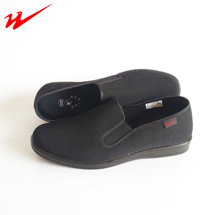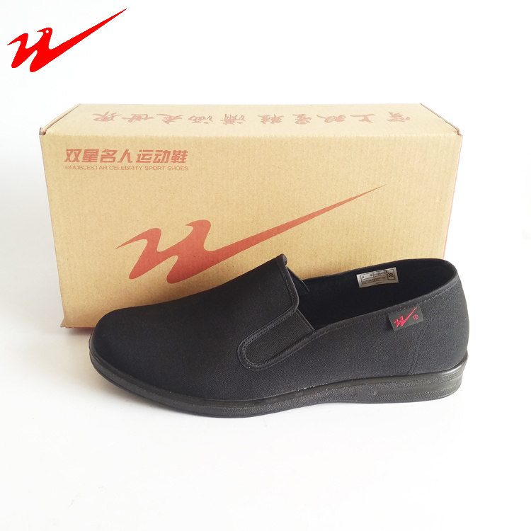 青岛双星休闲男鞋经典纯黑色一脚蹬帆布鞋轻便耐磨软底板鞋男包邮