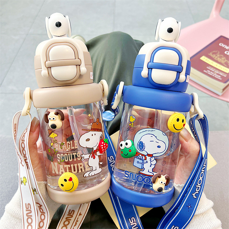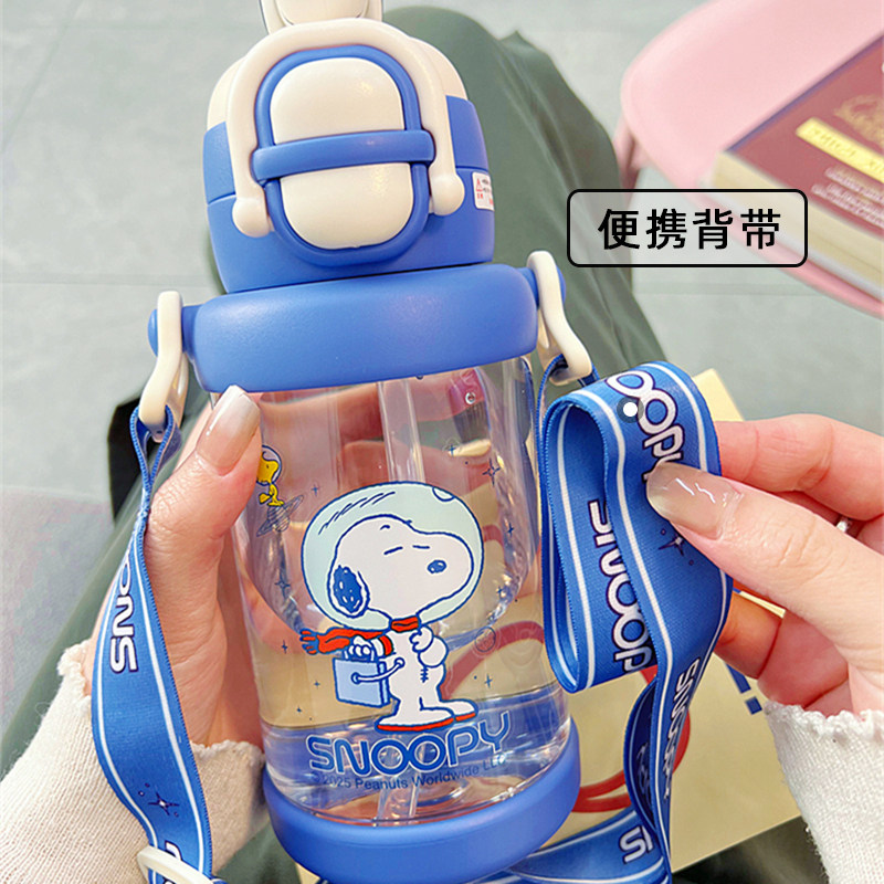 可爱史努比塑料杯儿童耐热便携双饮杯学生运动大容量吸管随手水杯