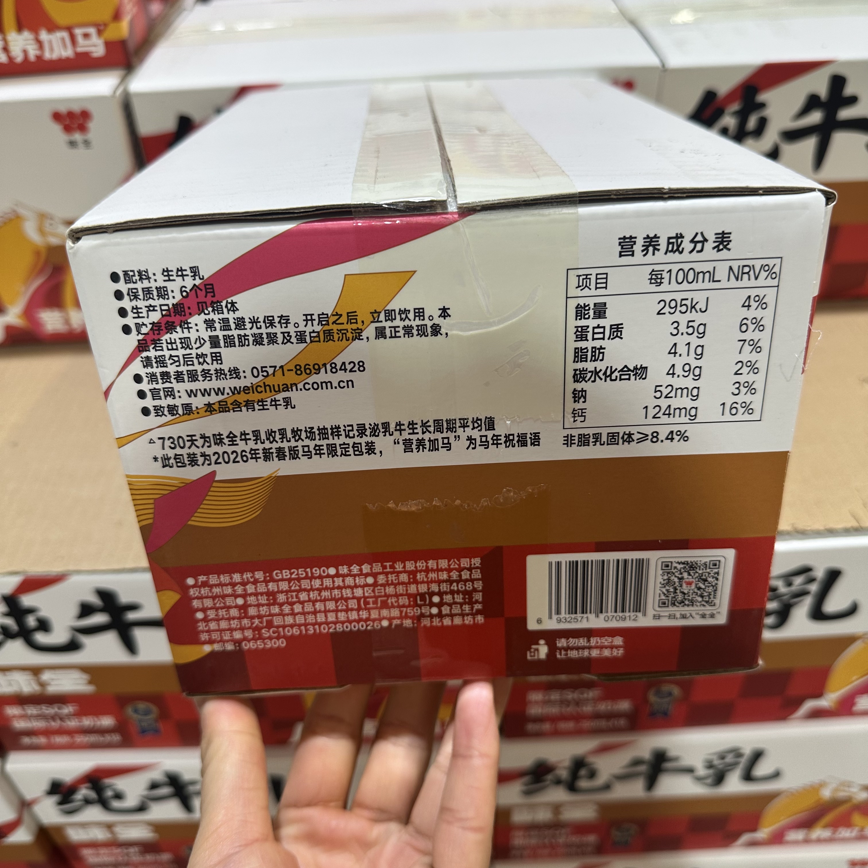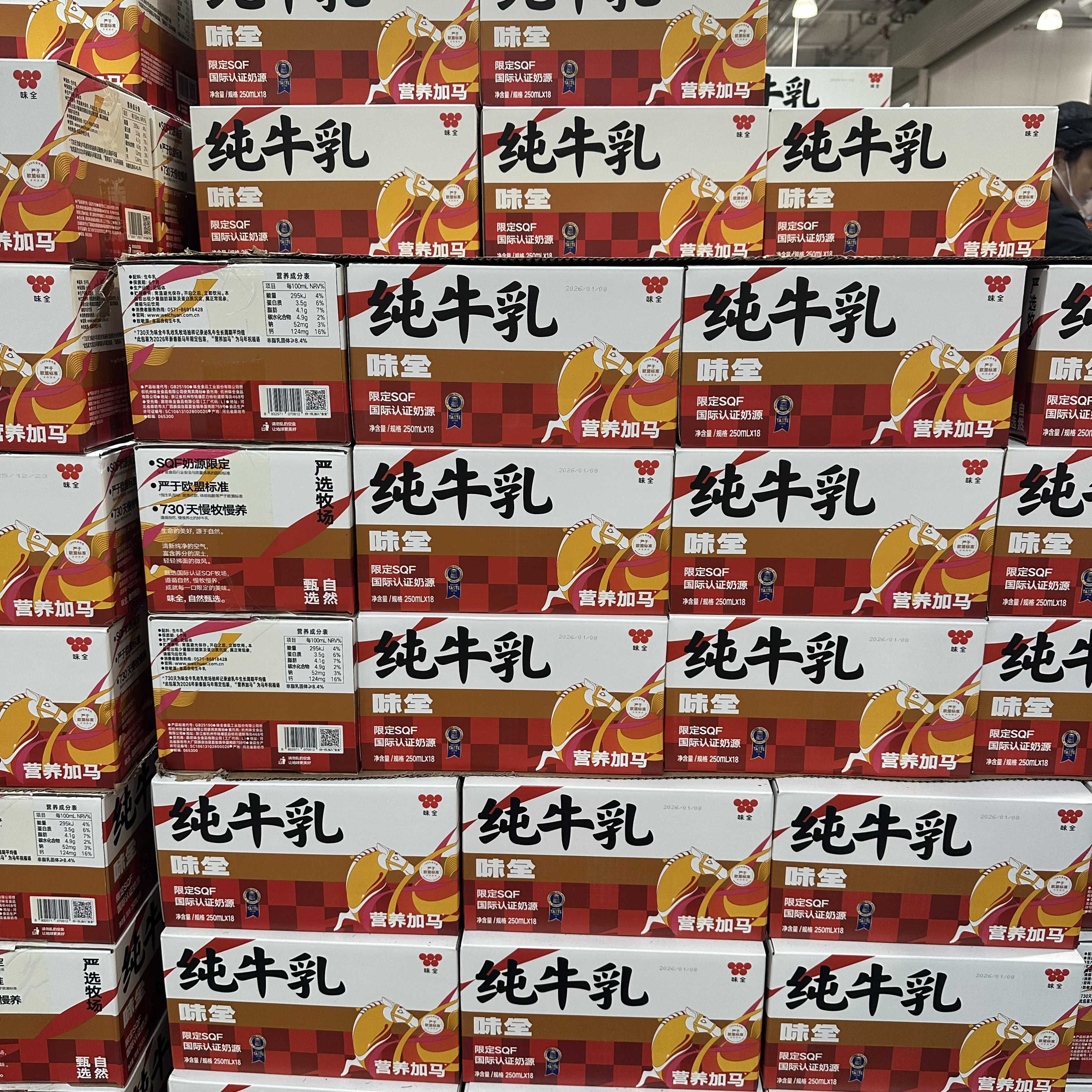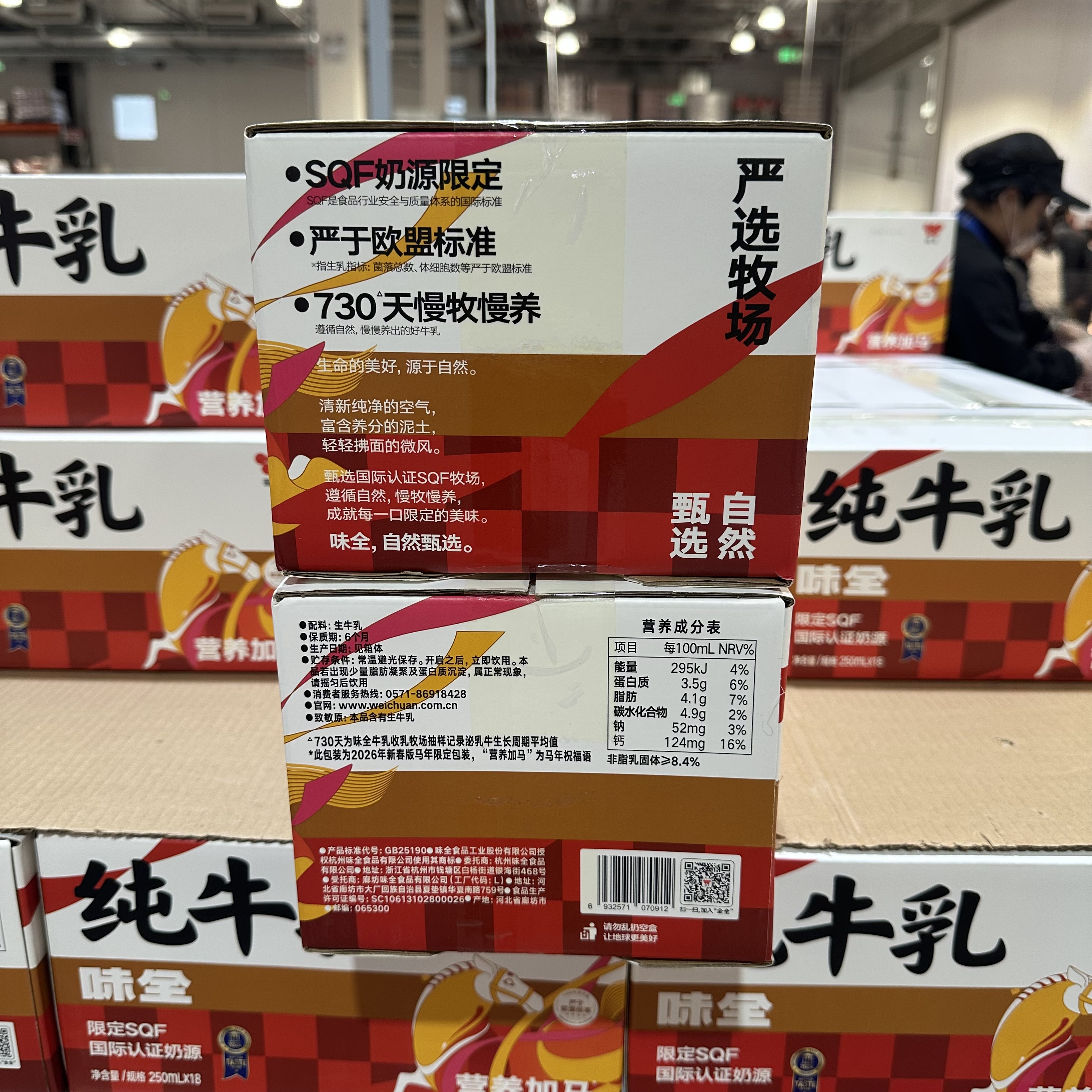 开市客代购味全常温纯牛奶250ml*18营养早餐搭配优质乳源学生儿童