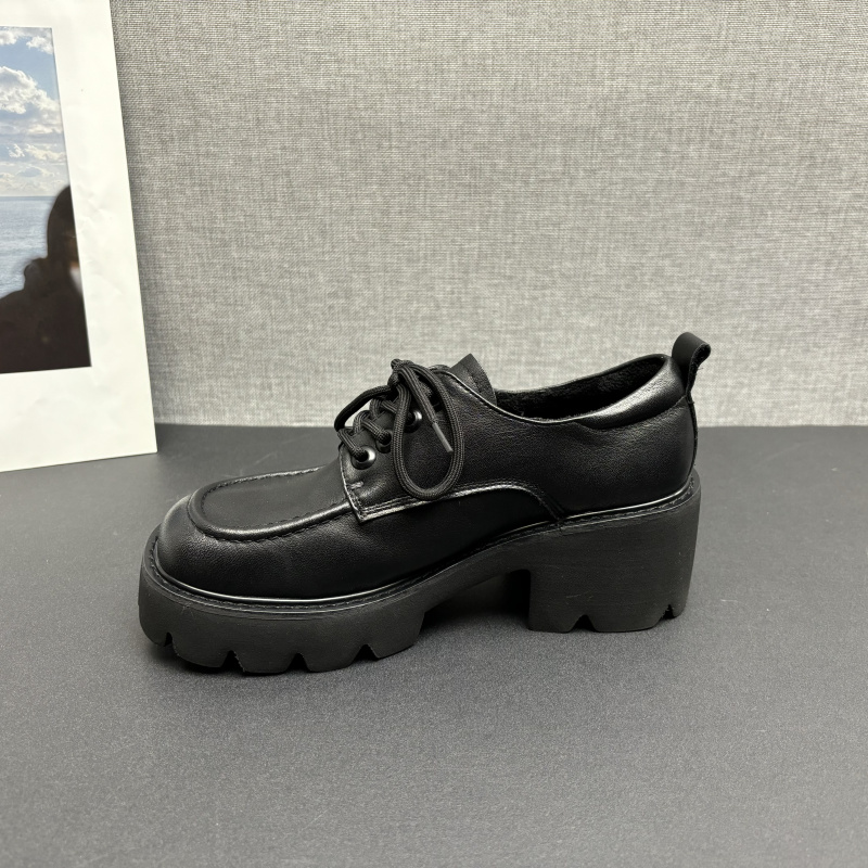 厂家断码秋冬新款真皮女鞋圆头粗跟厚底增高深口韩版显瘦牛皮单鞋