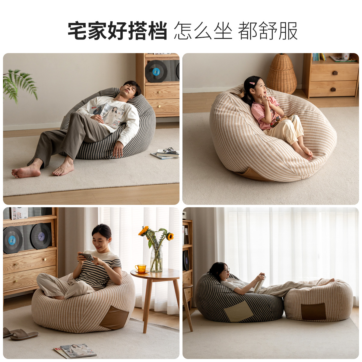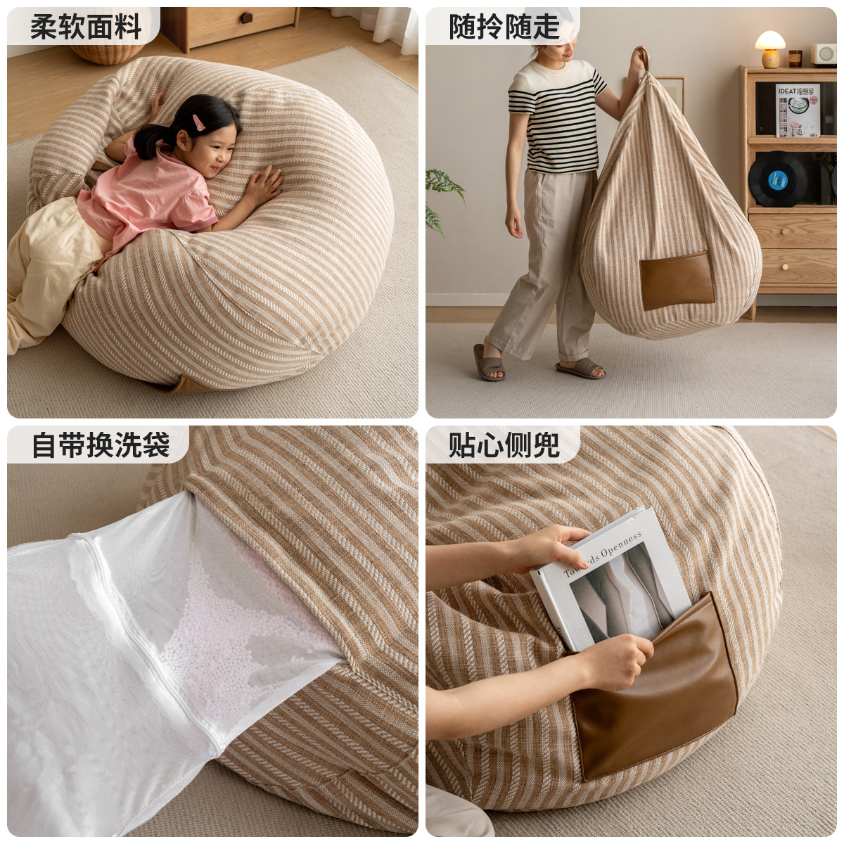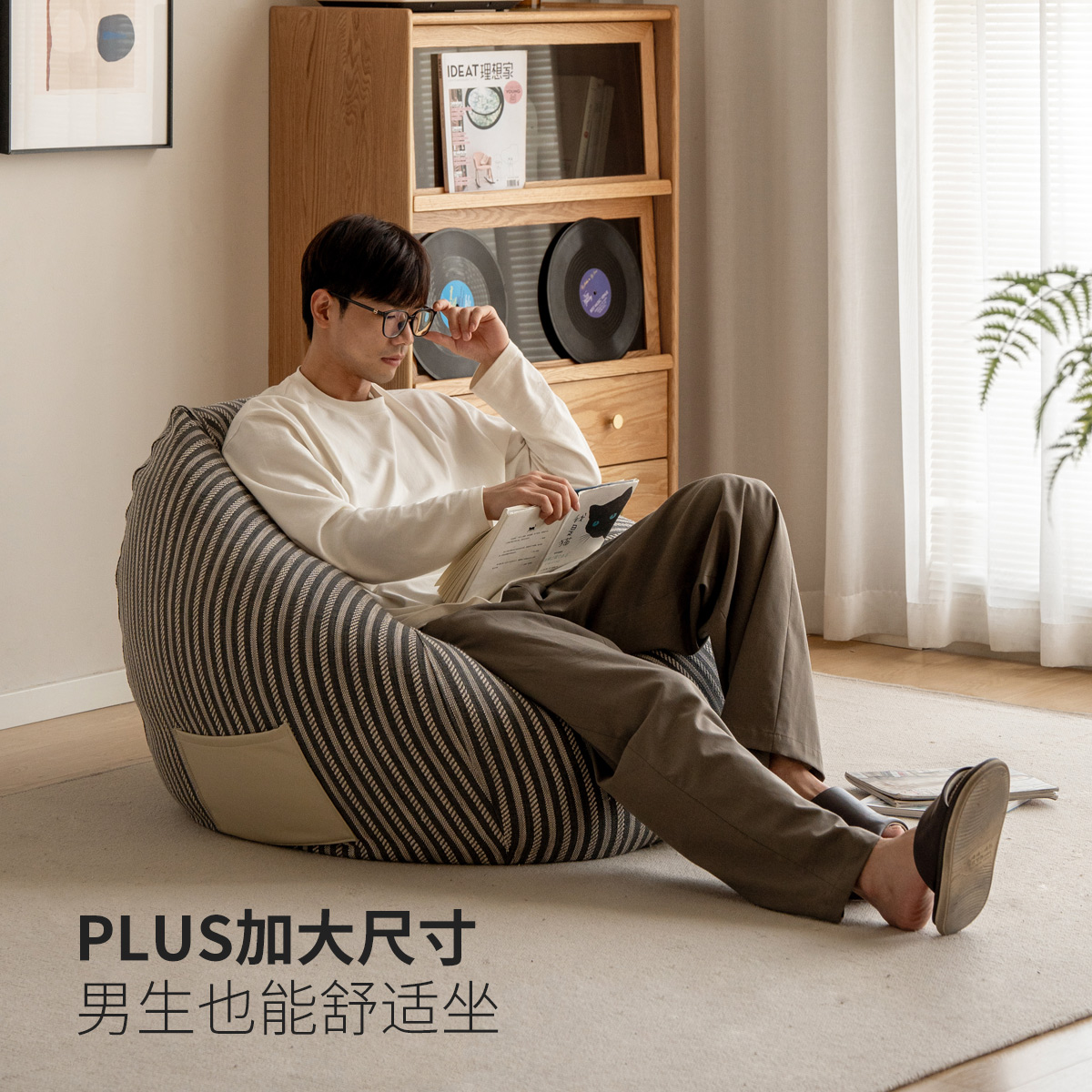 源氏木语布艺豆袋沙发可躺可睡单人椅小户型卧室阳台榻榻米沙发