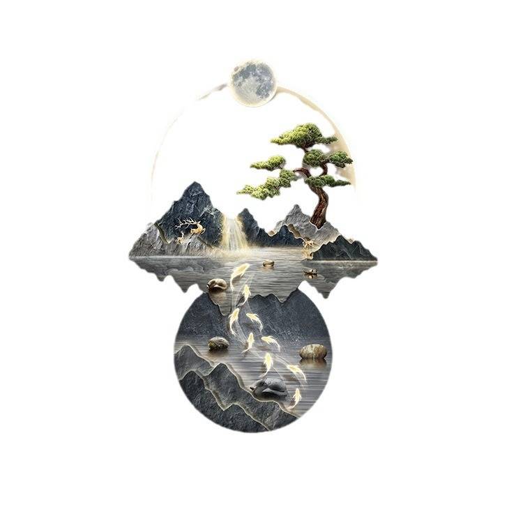 流水生财新中式玄关装饰画大气山水走廊过道挂画入户正对门壁画灯