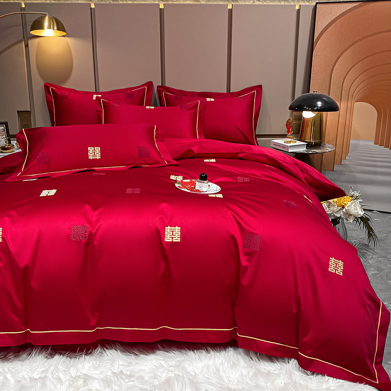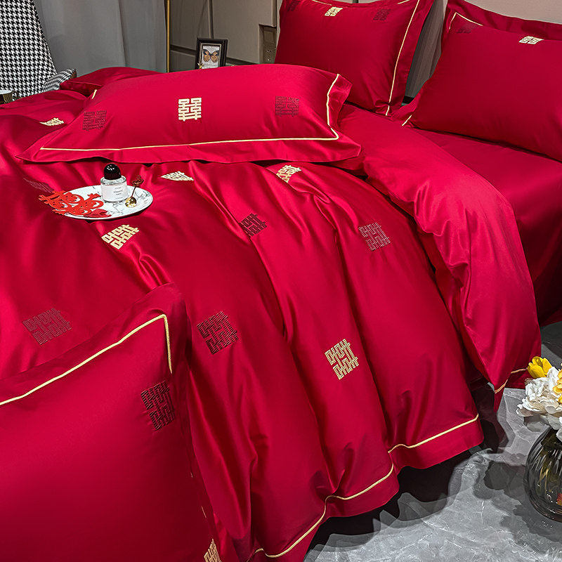 结婚四件套婚庆婚房喜被床单刺绣被套被单婚礼欧式大红色床上用品