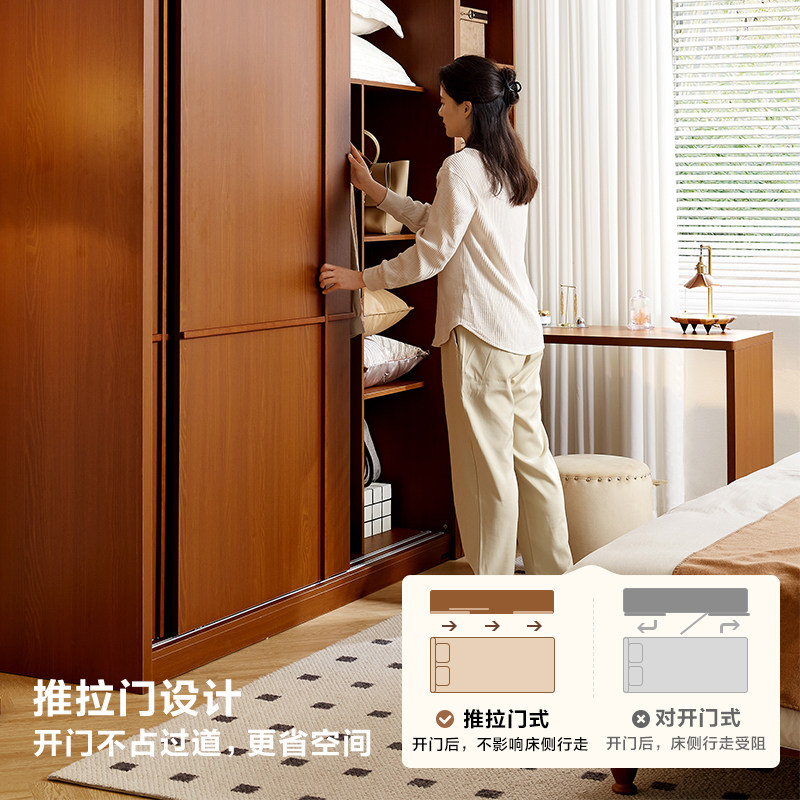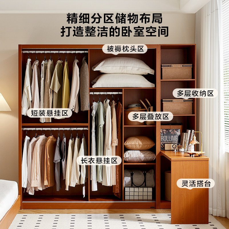 政府补贴全友家居中古风衣柜连书桌一体组合卧室推拉门转角衣橱