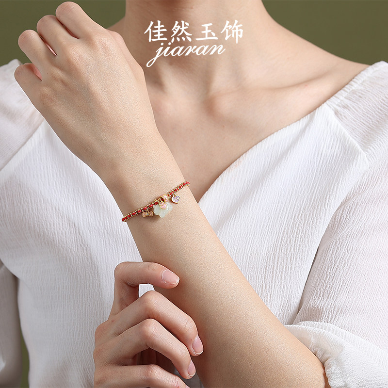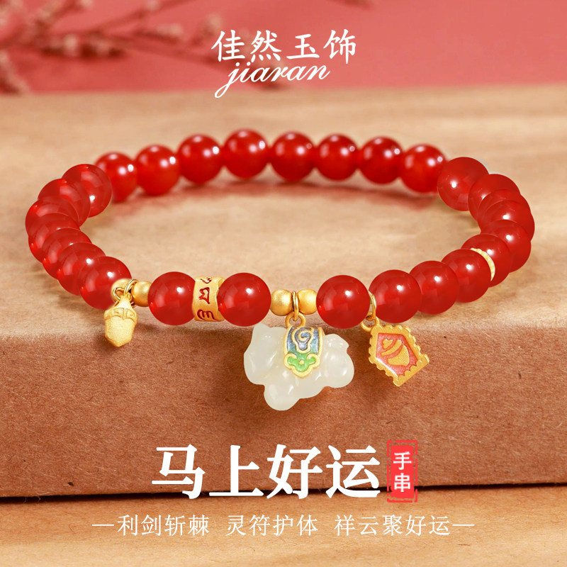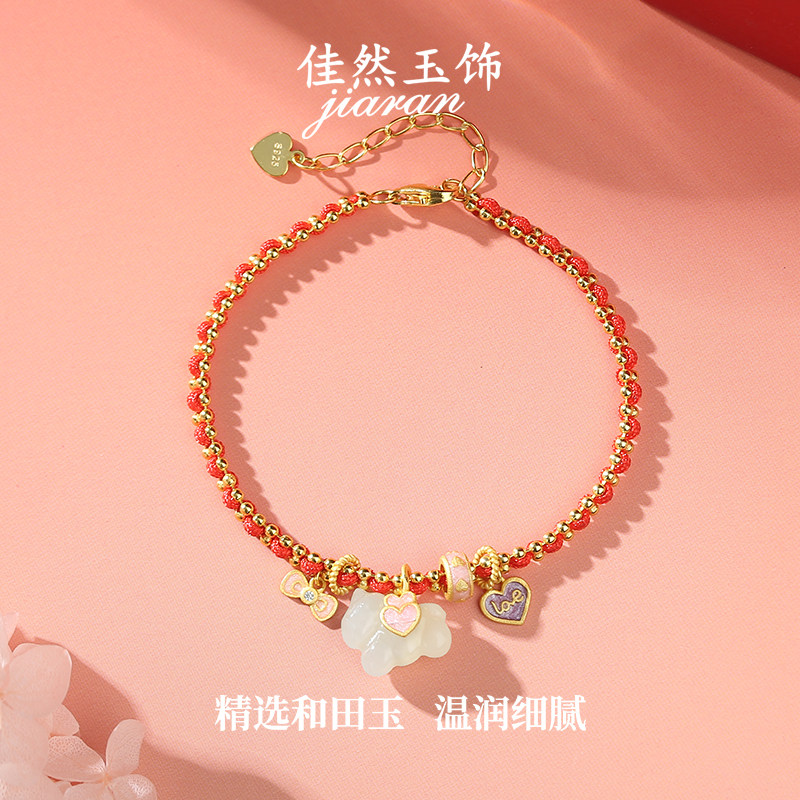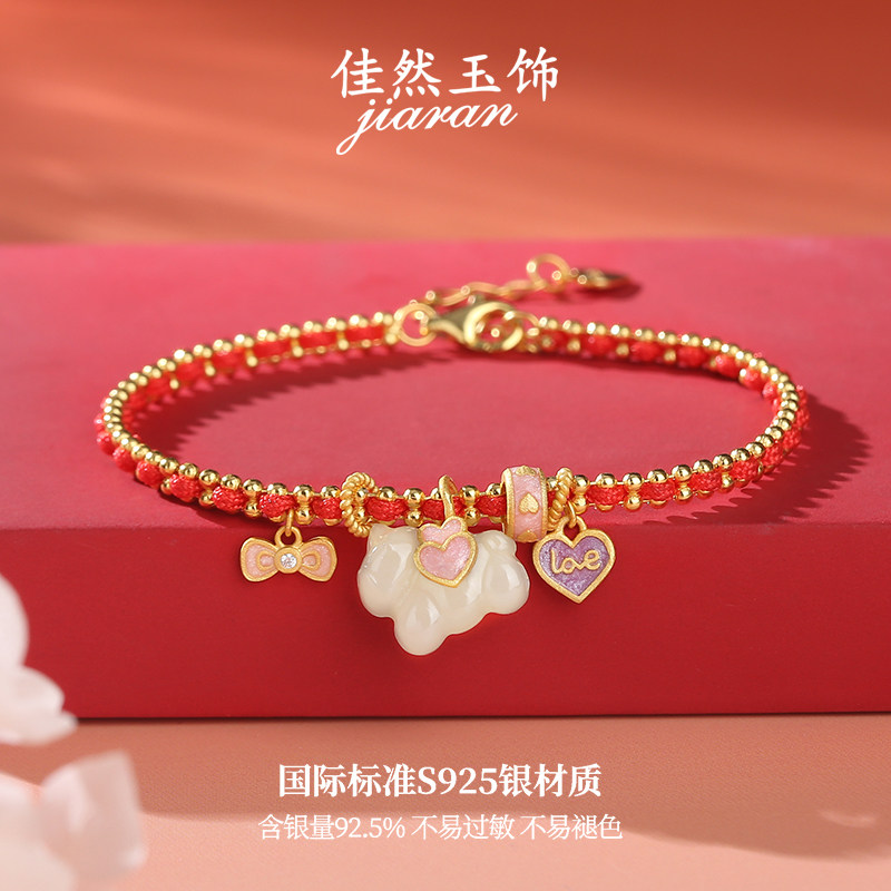 佳然玉饰2026本命年属马红绳编织绳和田玉纯银手链女送女朋友礼物