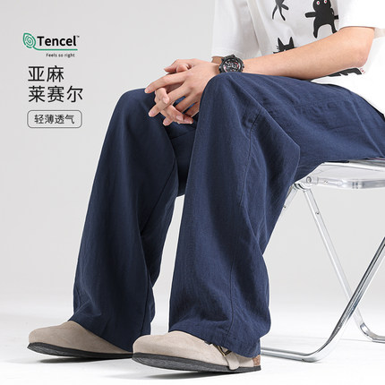 亚麻裤子男款春秋夏季休闲裤宽松阔腿直筒运动裤男士新款棉麻长裤