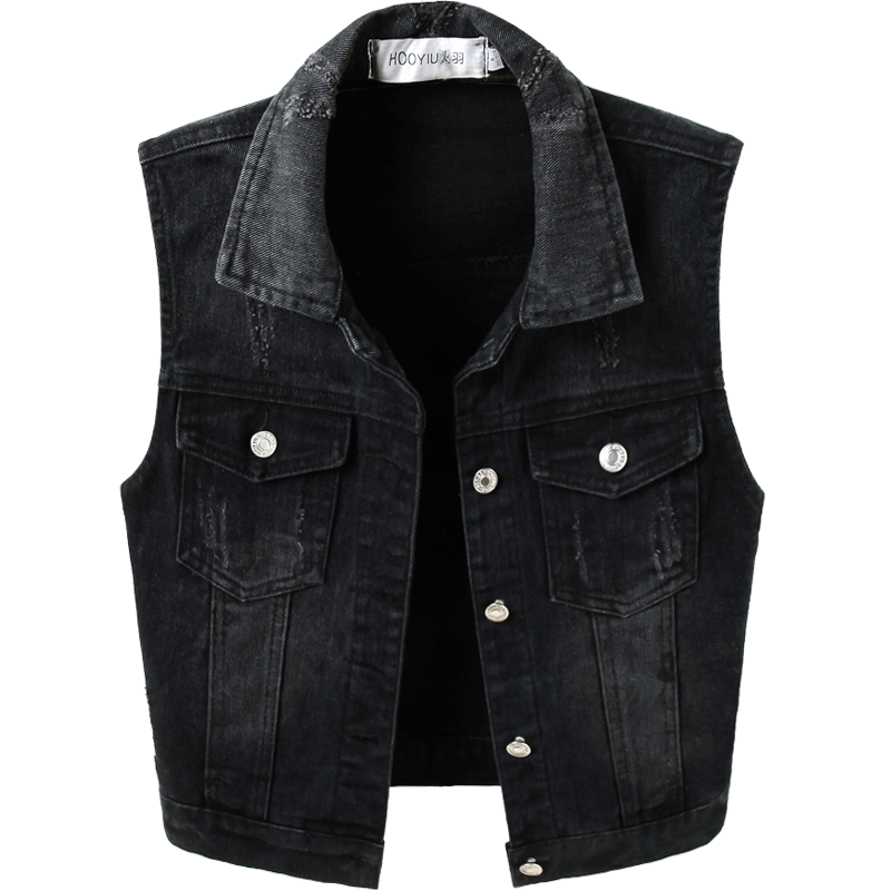黑色短款牛仔马甲修身