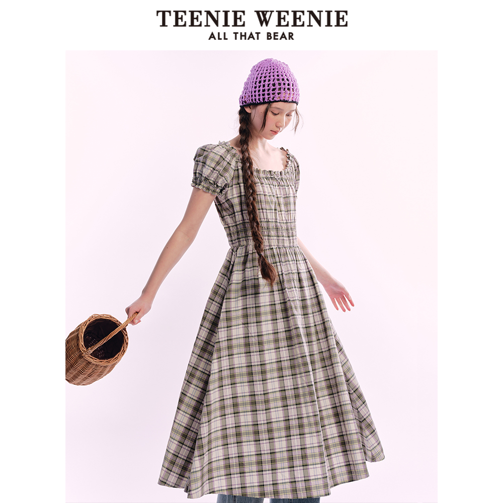 TeenieWeenie小熊女装连衣裙2025夏季新款活力清新田园风格纹裙子