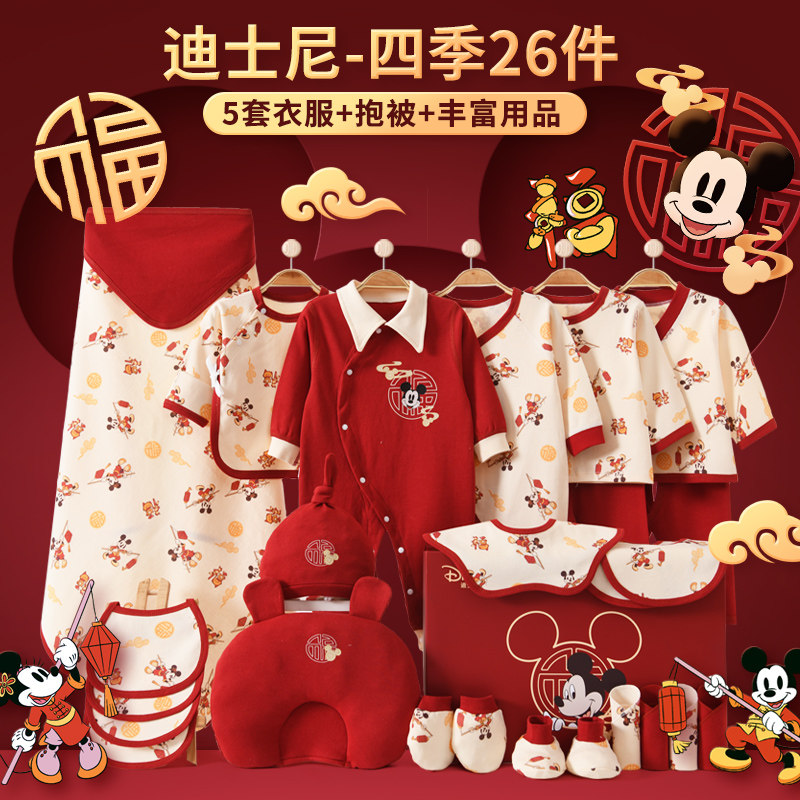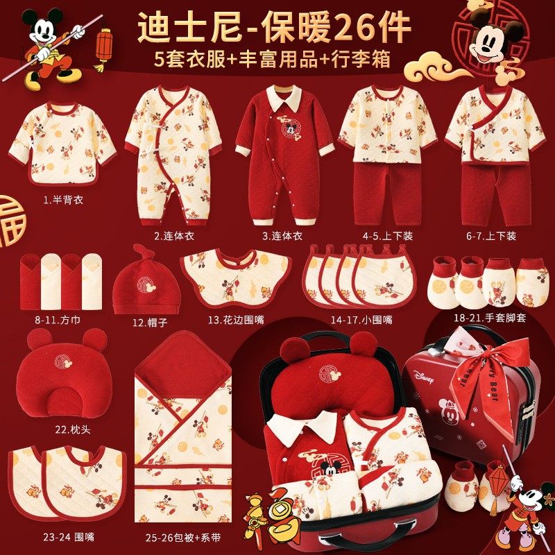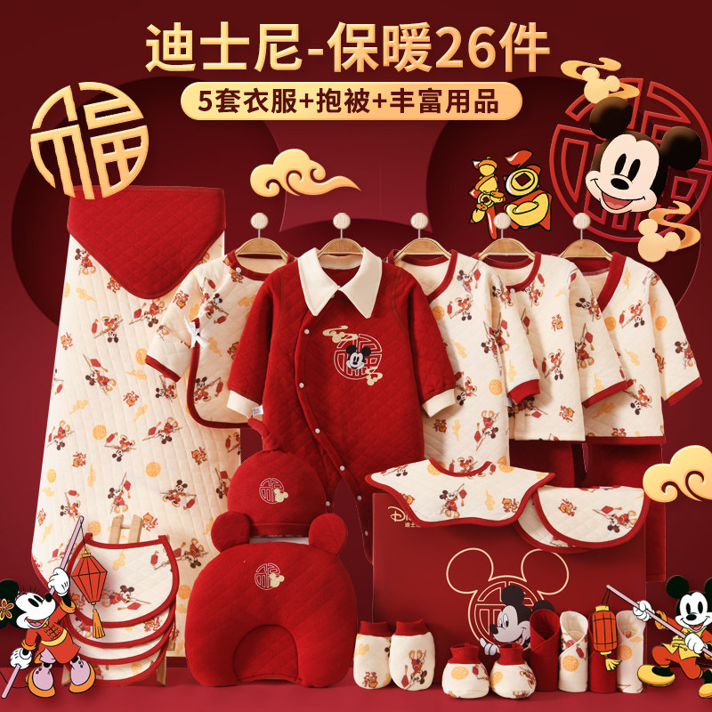 迪士尼秋冬初生刚出生宝宝见面礼物高档送礼新生婴儿衣服礼盒套装